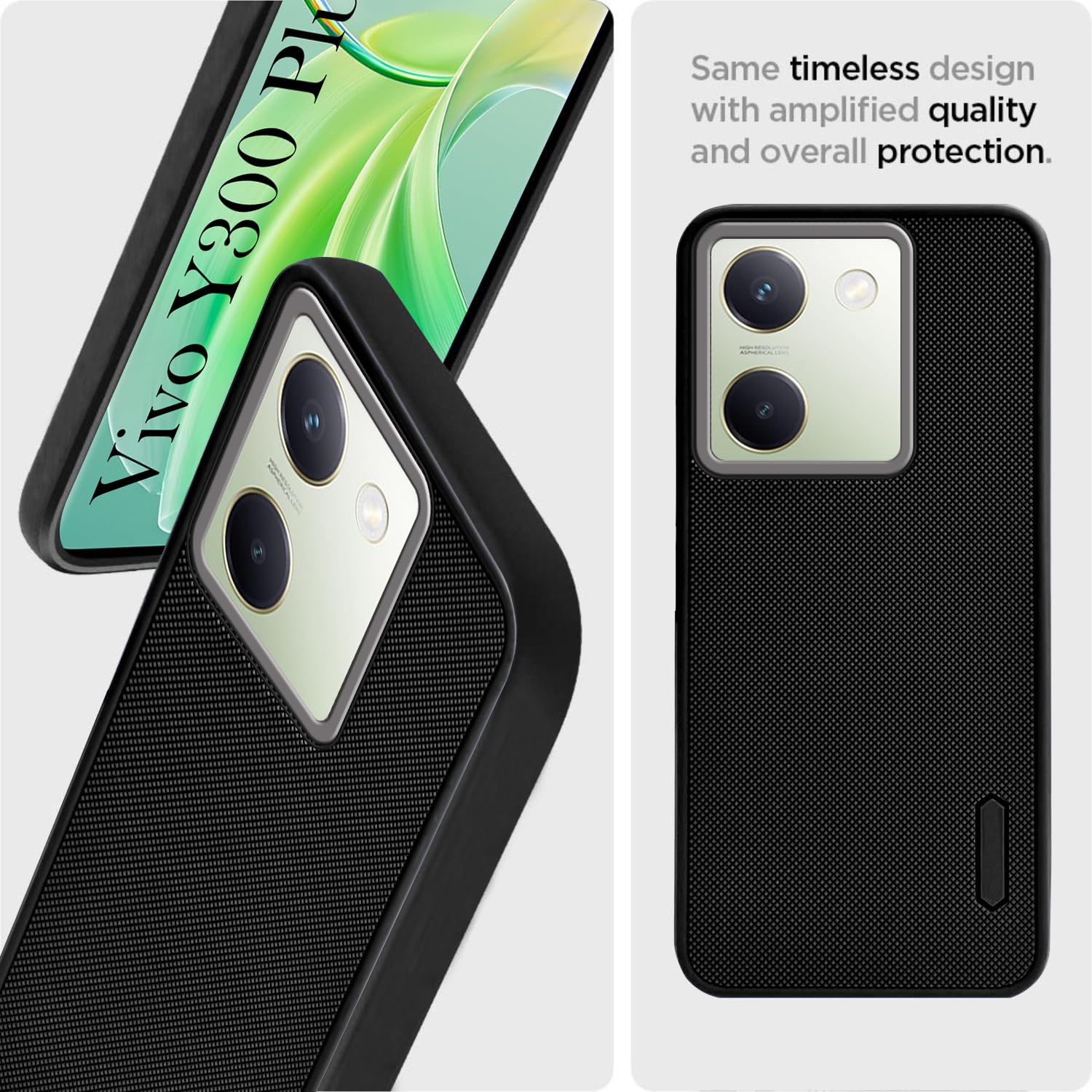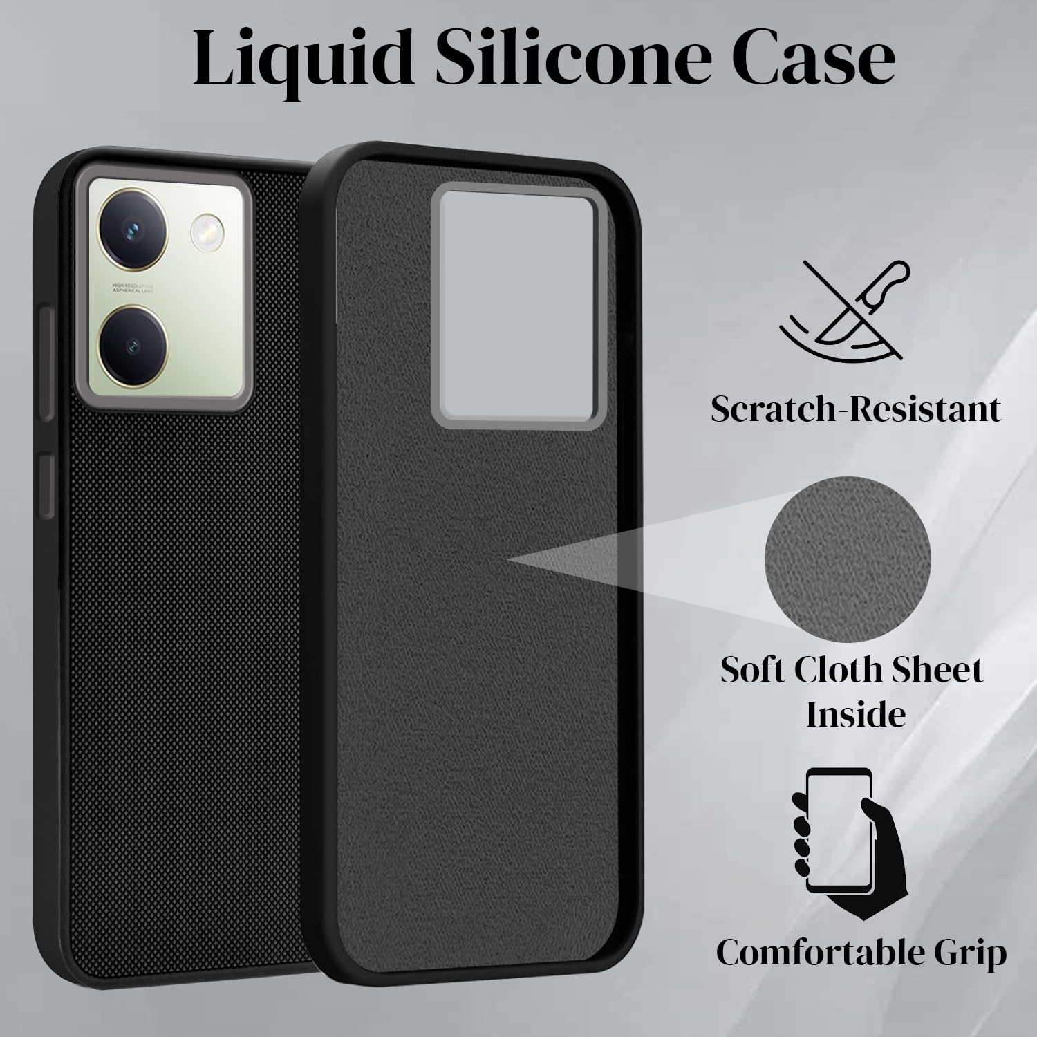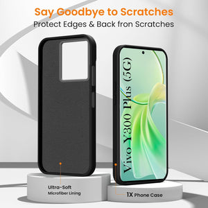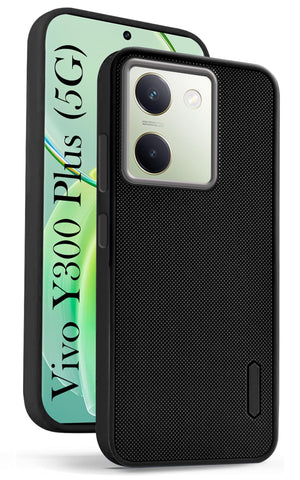 For Vivo Y300 Plus Back Cover Case (Textured Grip Design | Micro-Fiber Cloth Inside | Slim and Light Weight | Soft Touch and Feel | Black)