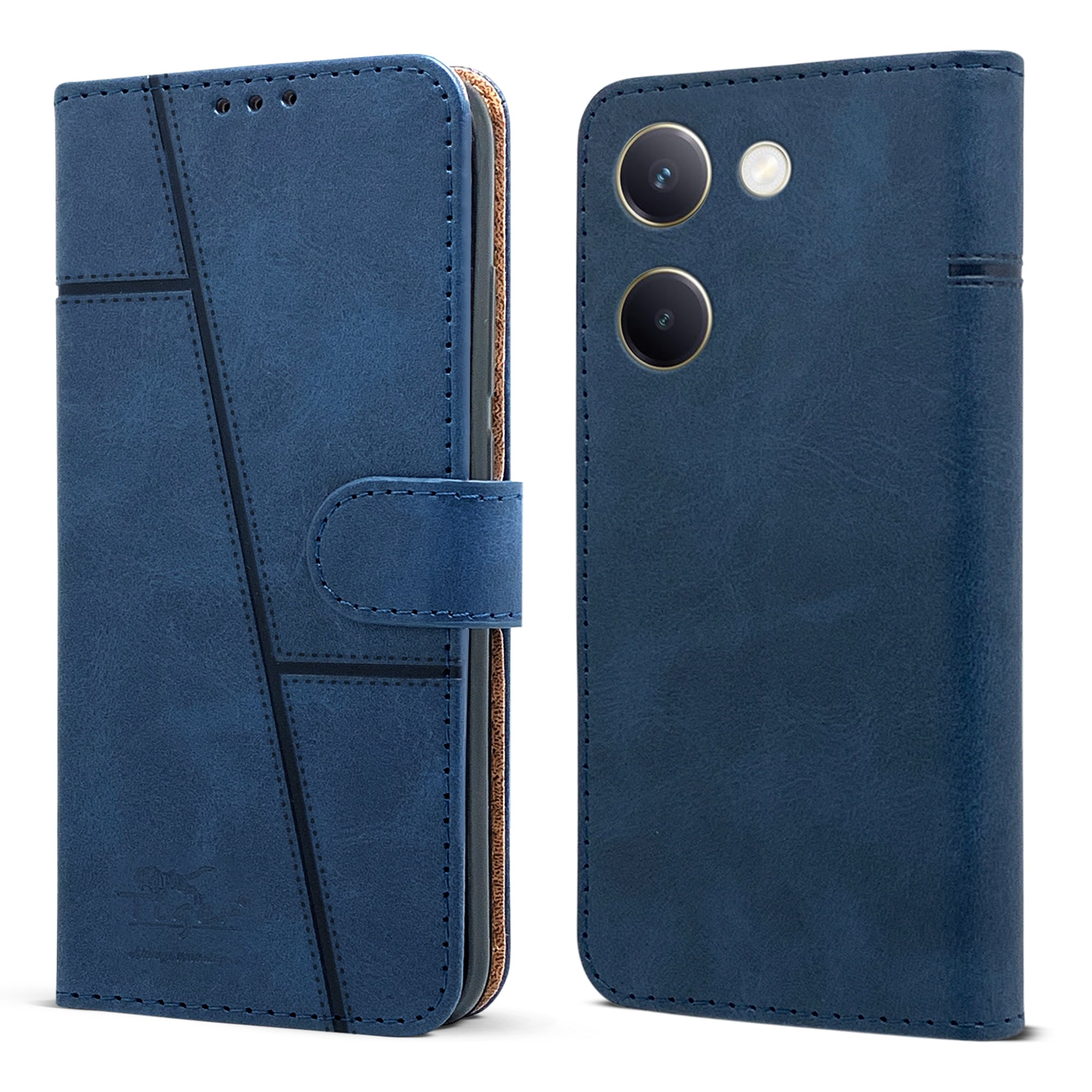 For Vivo Y300 Plus Flip Cover Case ( Stitched Leather with Magnetic Closure)