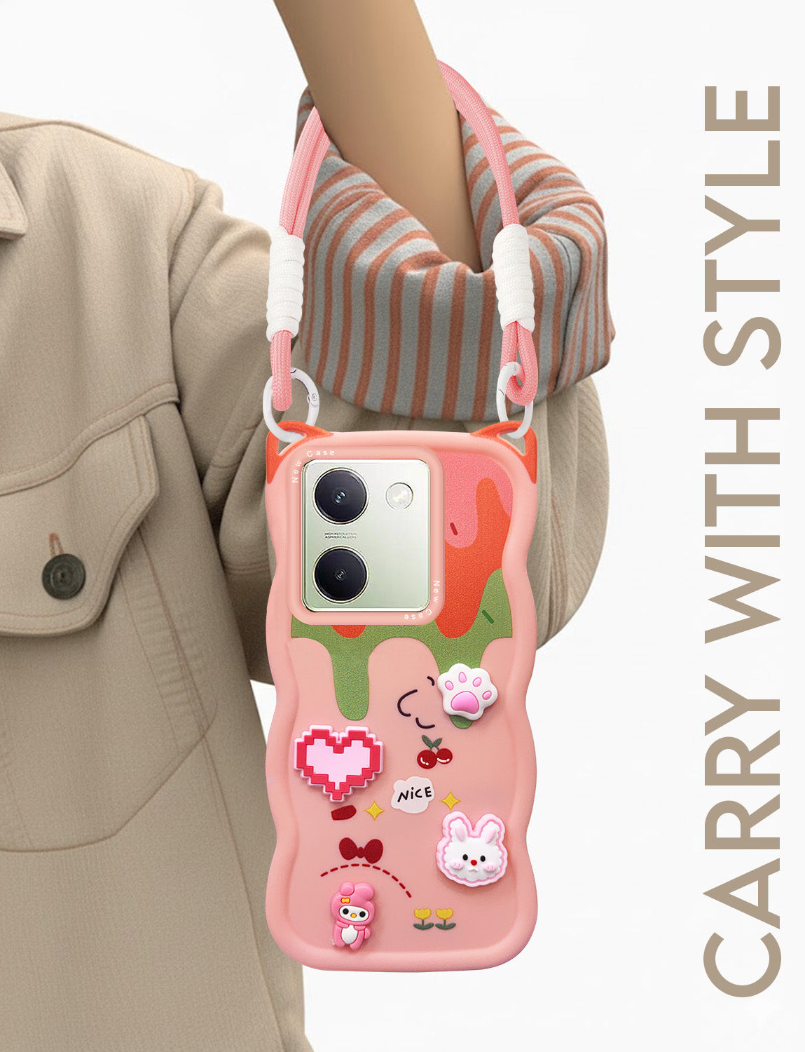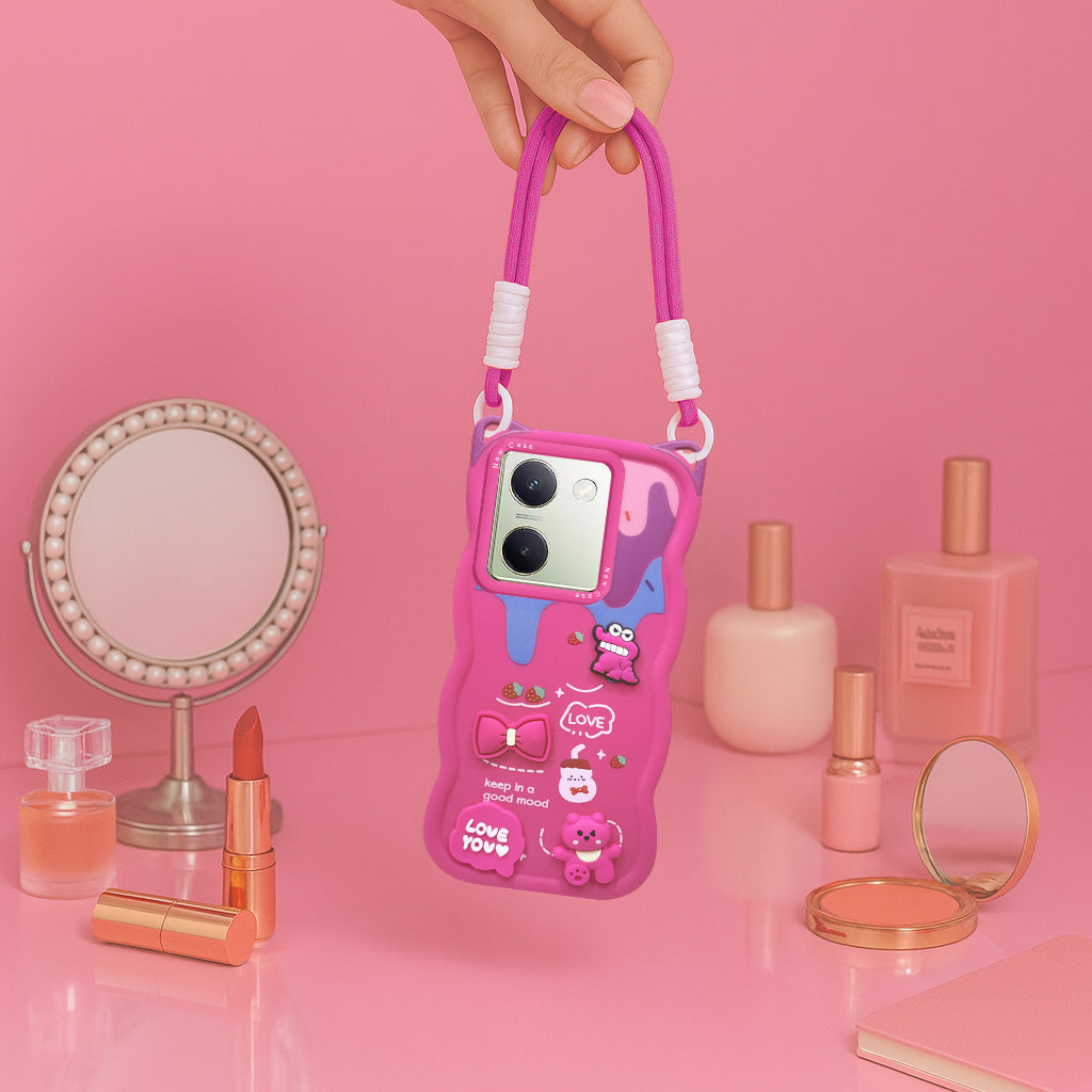 For Vivo Y300 Plus Back Case Cover Strap(3D embossed Figures | Strap Holder | 360* Soft Cushion with Camera Bump)