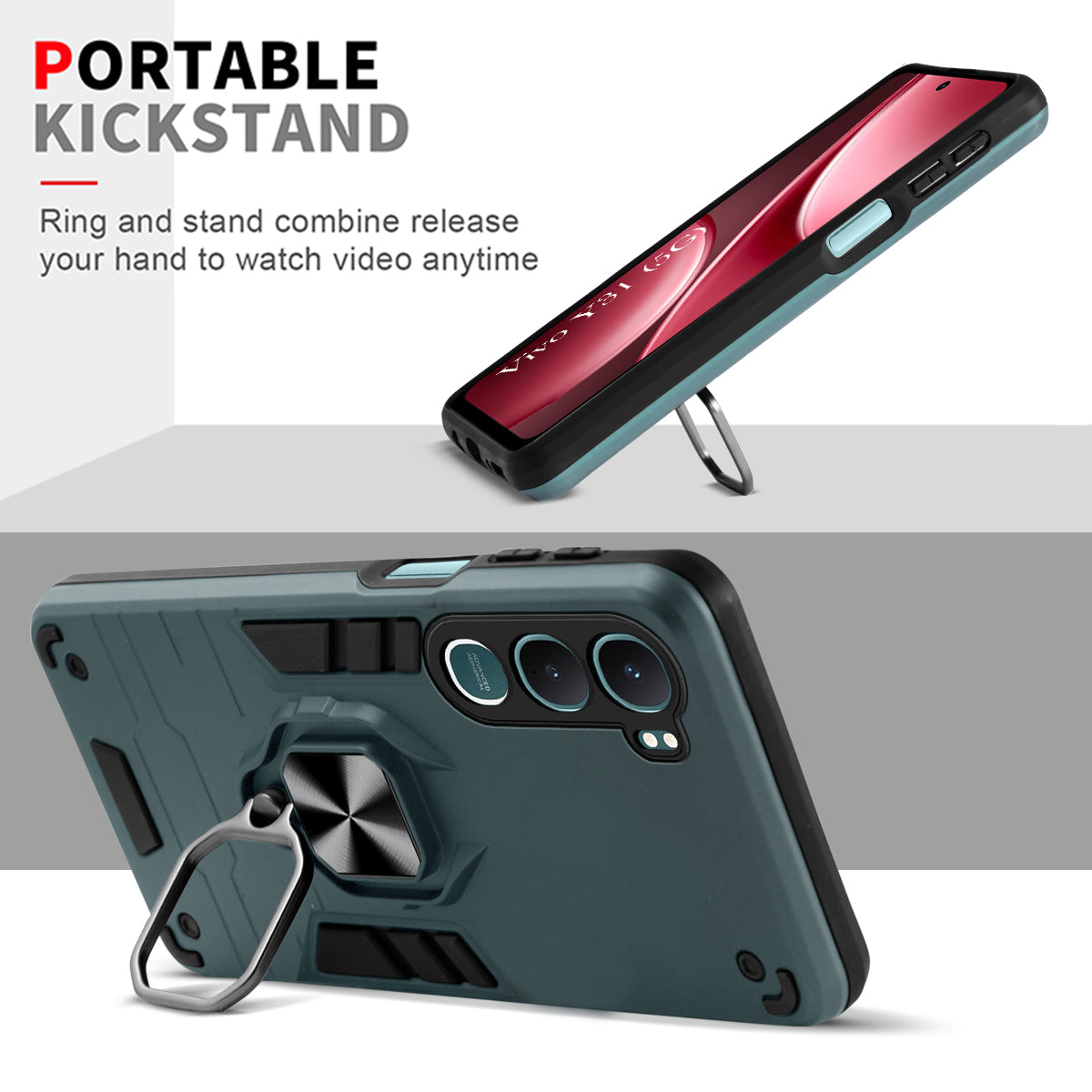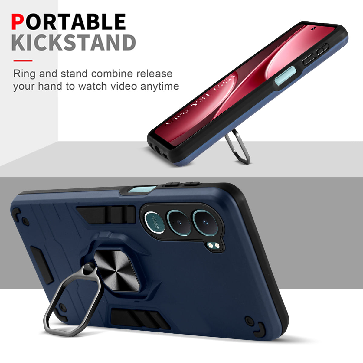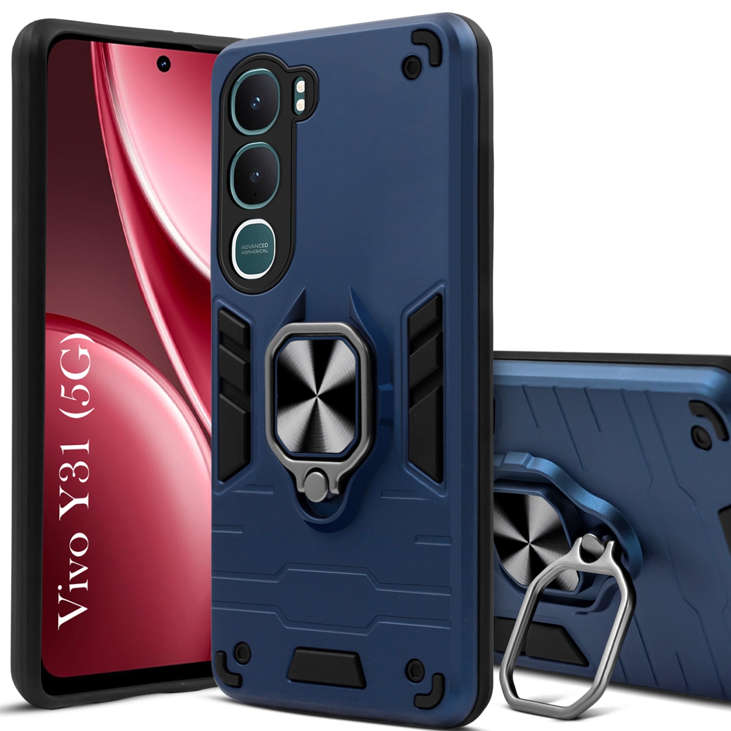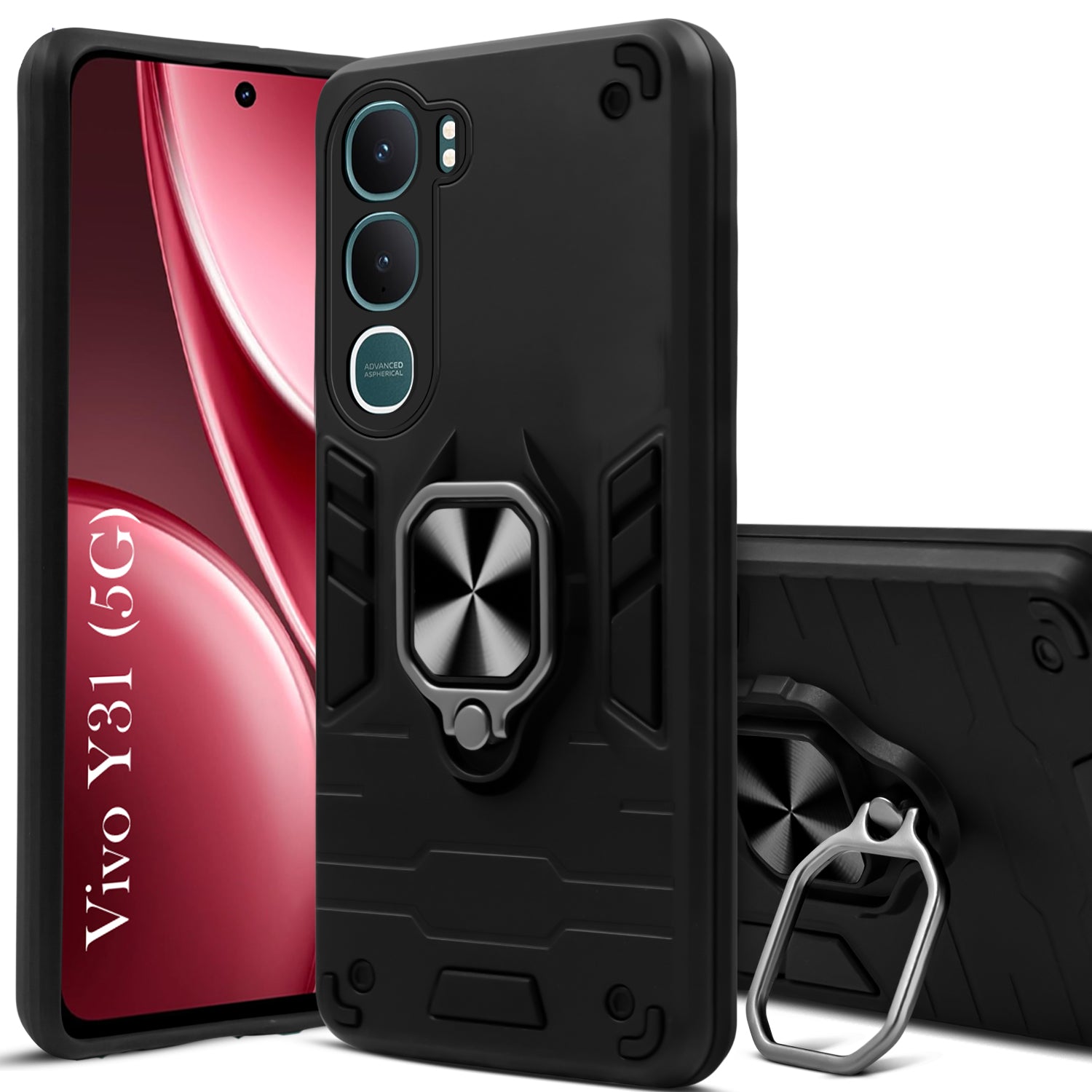 For Vivo Y31 5G Back Cover Case Hybrid Armor (Shockproof Dual Layer Polycarbonate |Ring Holder Kickstand)