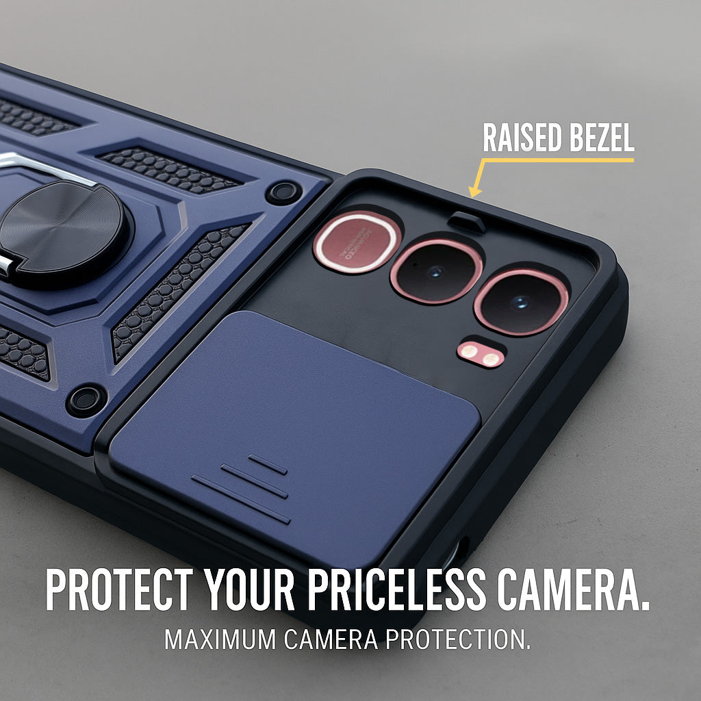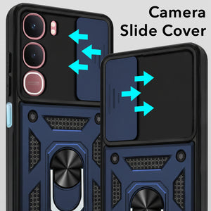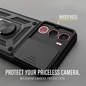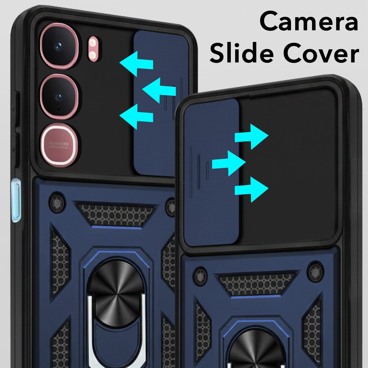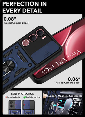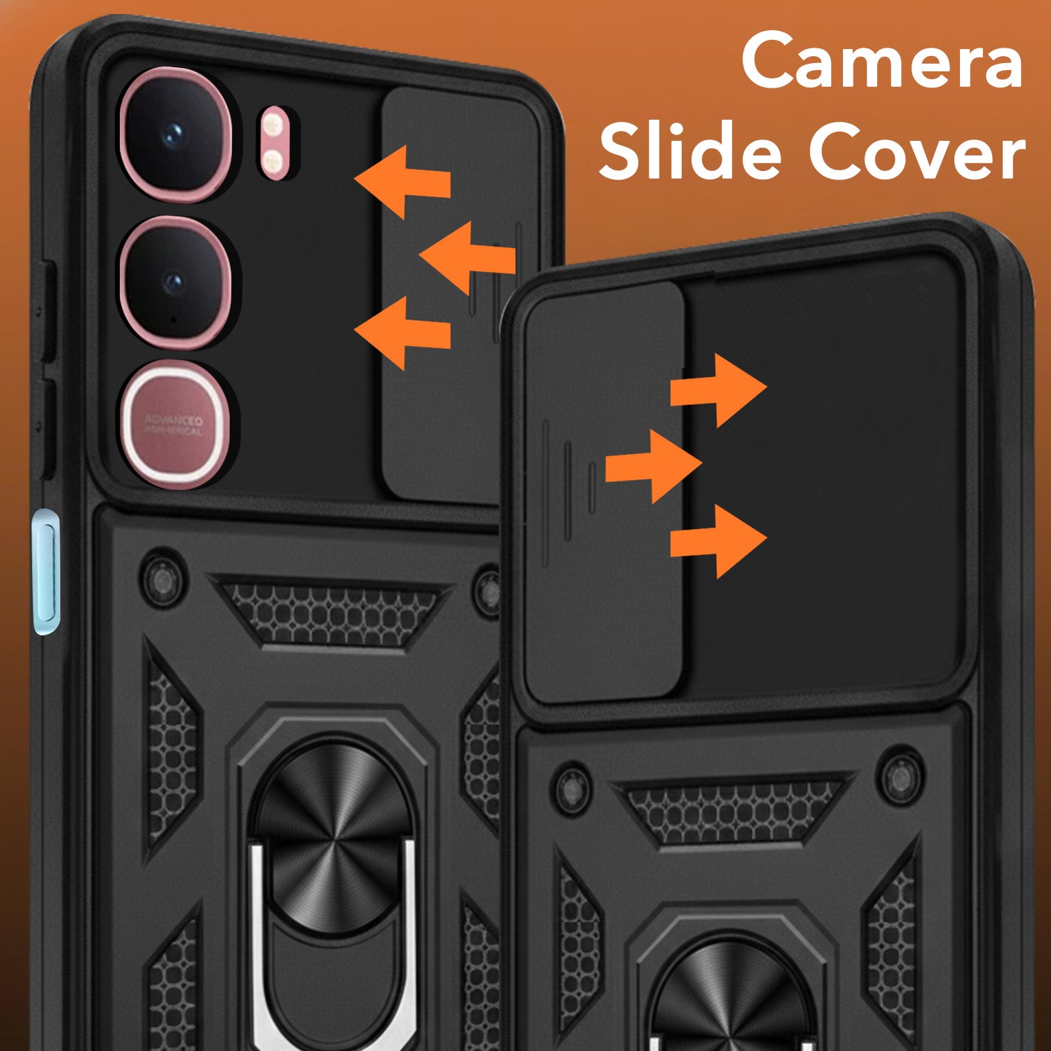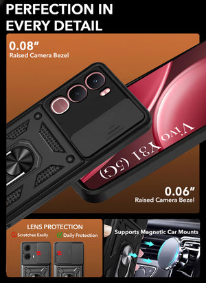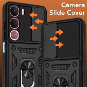 For Vivo Y31 5G Back Cover Case Hybrid Armor (Sliding Shutter Camera Protection | Polycarbonate |Ring Holder Kickstand)