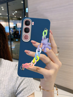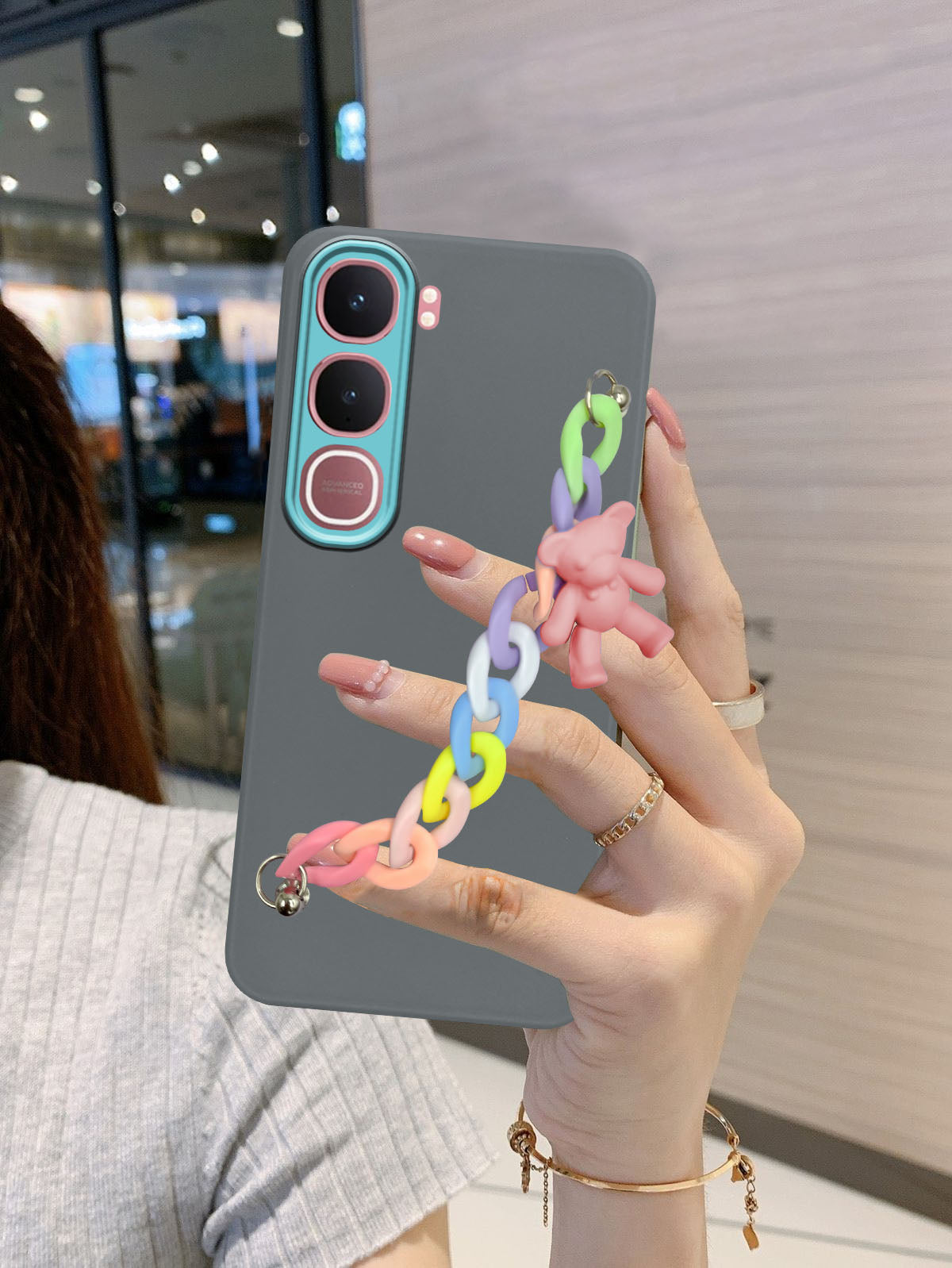 For Vivo Y31 5G Back Cover Case Silicone (Matte Finish |Wrist Hanging Chain | Teddy Bracelet Charms | Full Camera Protection)