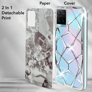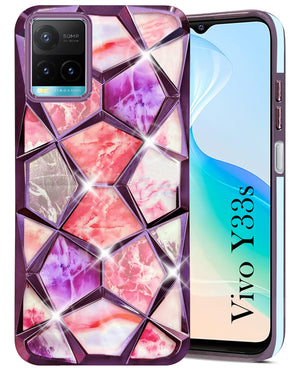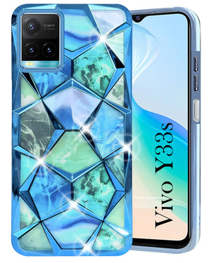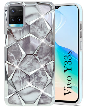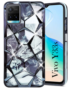 For Vivo Y33s Back Cover Case (Dual Design Glitter Sparkle and Detachable Diamond Print Case | Soft and Flexible)
