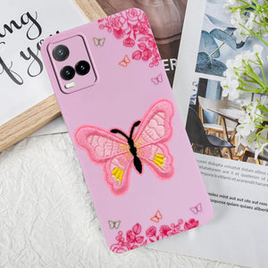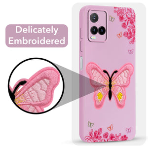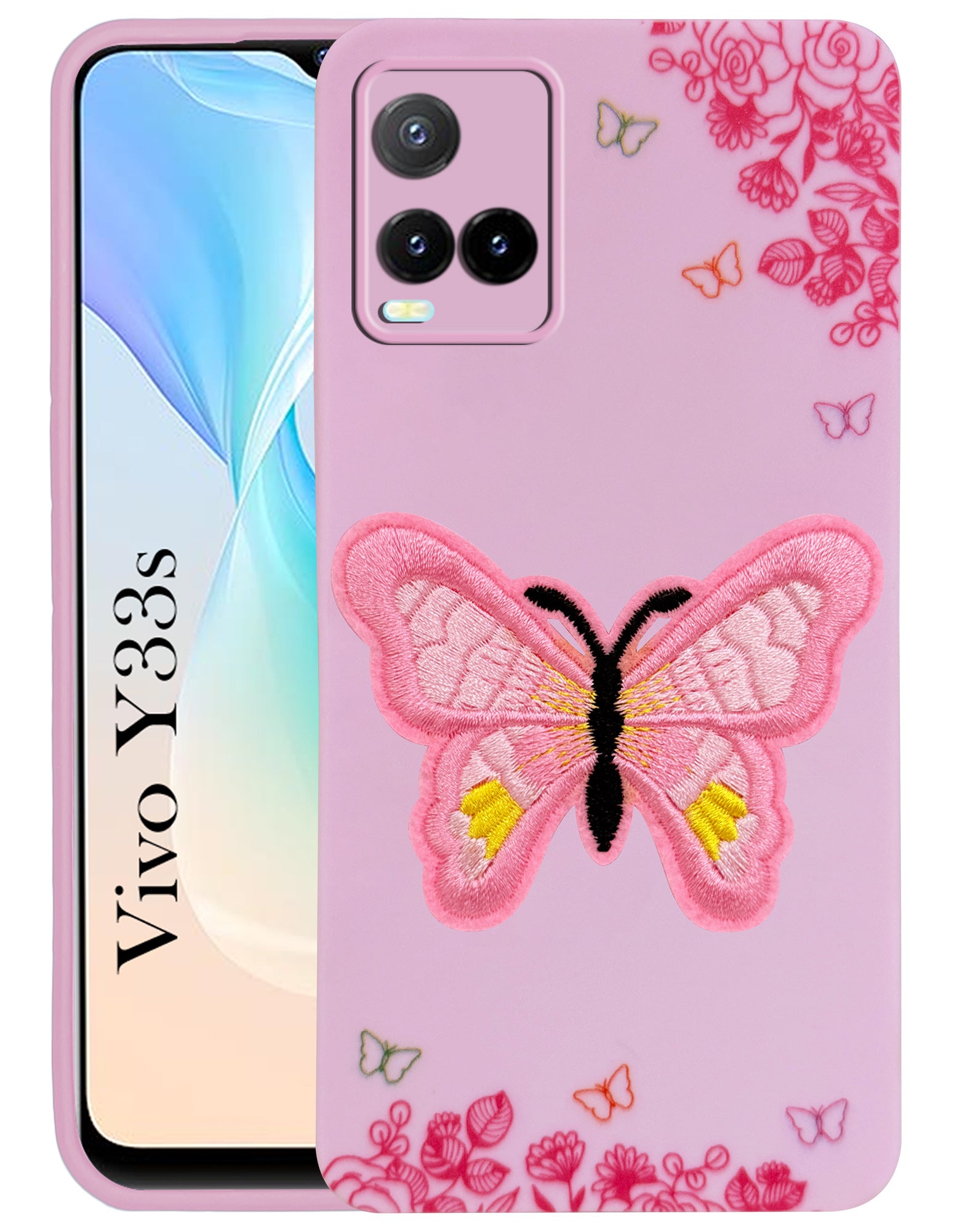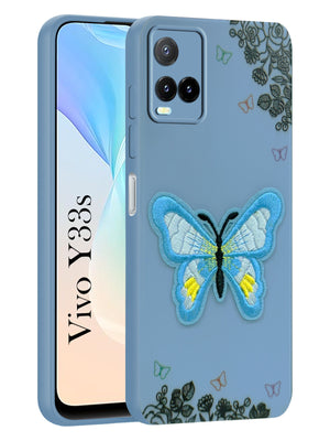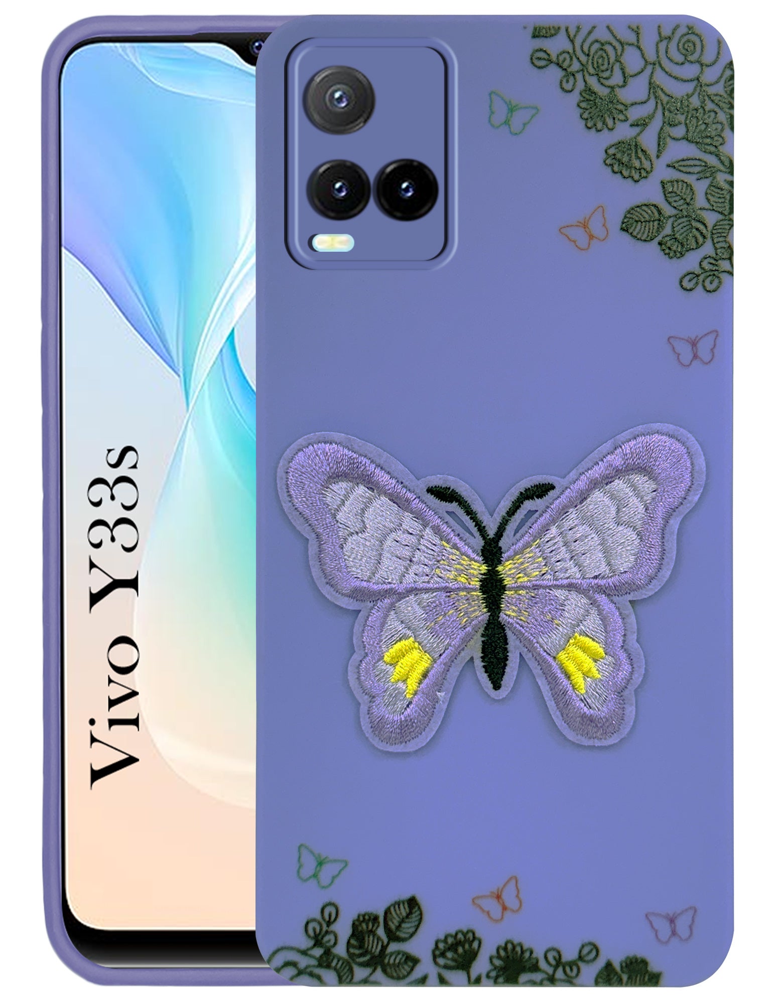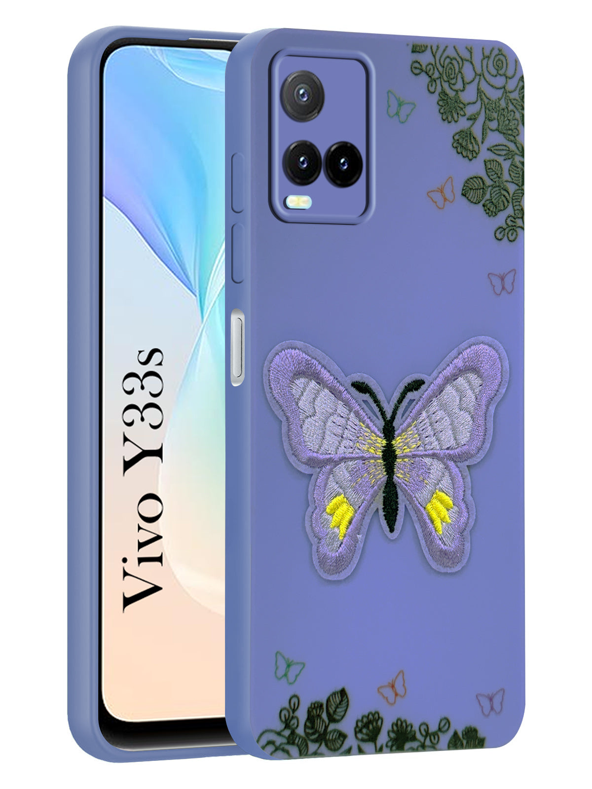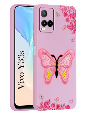 For Vivo Y33s Back Cover Case (Soft Butterfly Embroidery | Women Teen Girls | Camera Protection| Matte Silicone)