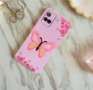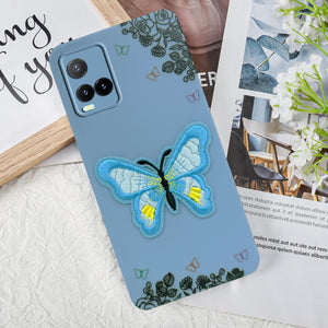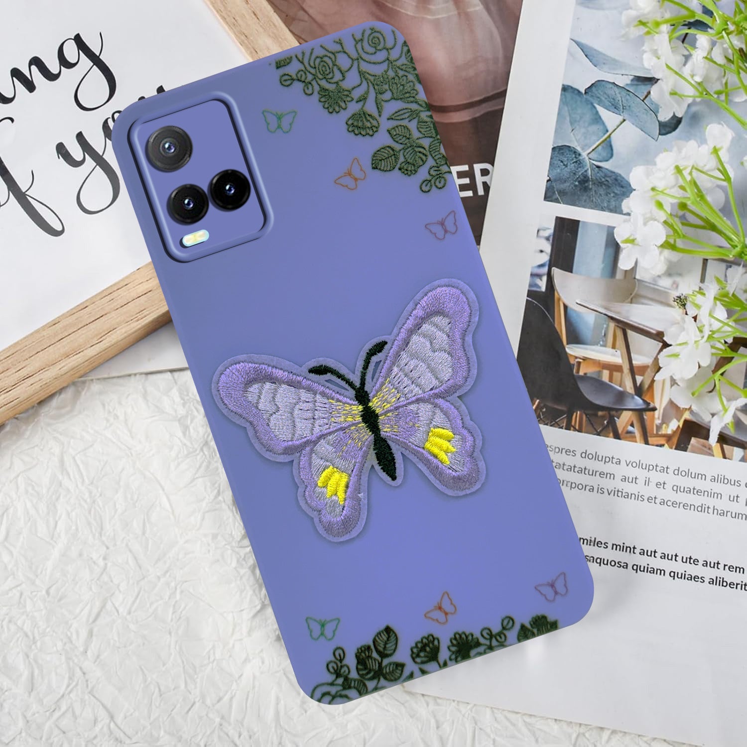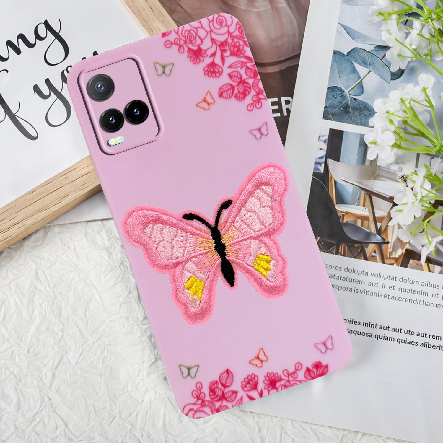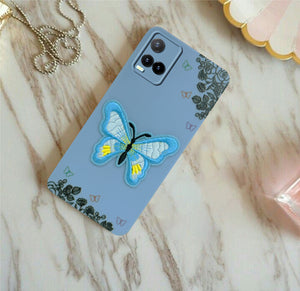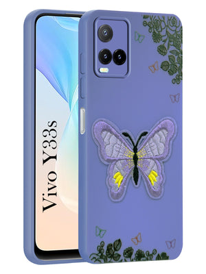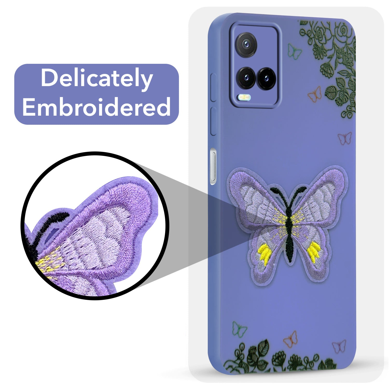 For Vivo Y33s Back Cover Case (Soft Butterfly Embroidery | Women Teen Girls | Camera Protection| Matte Silicone)