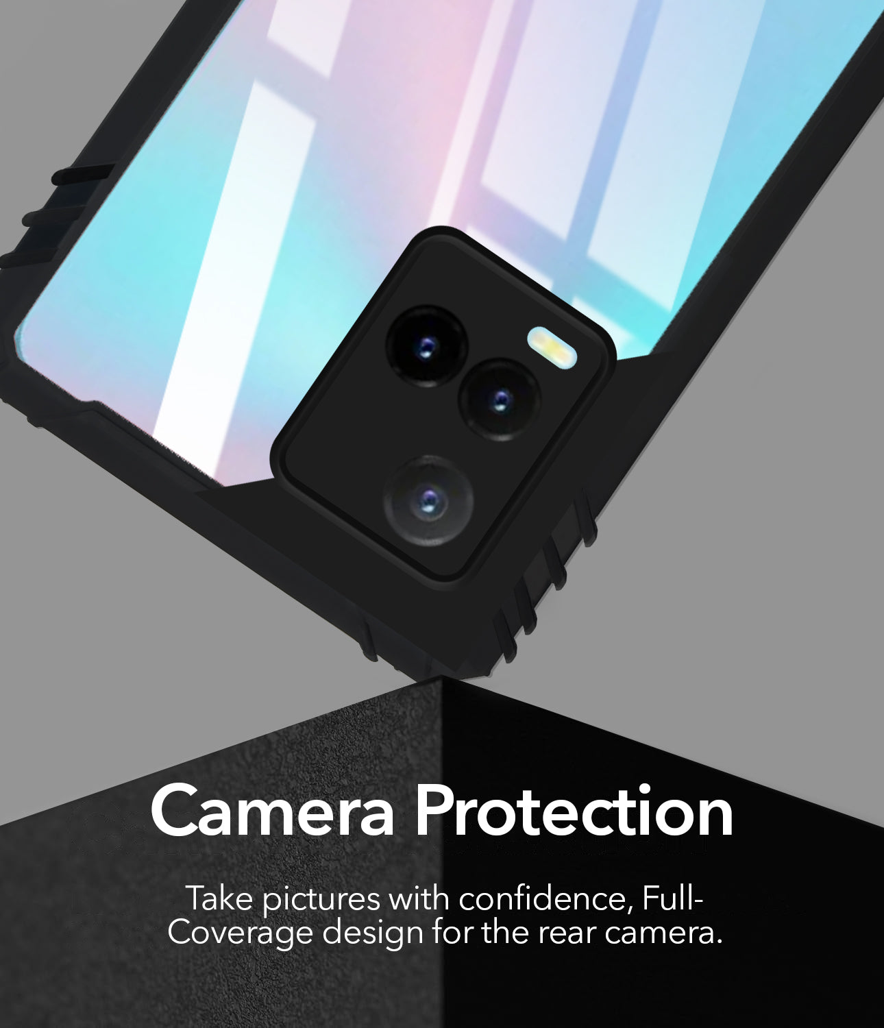 For Vivo Y33s Back Cover Case (Ultimate Shockproof Bumpers | Anti Yellow | Rugged Armor | Hybrid PC | Black )