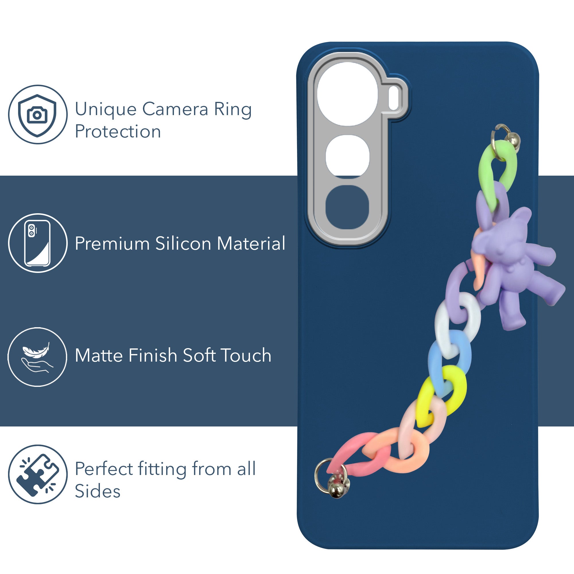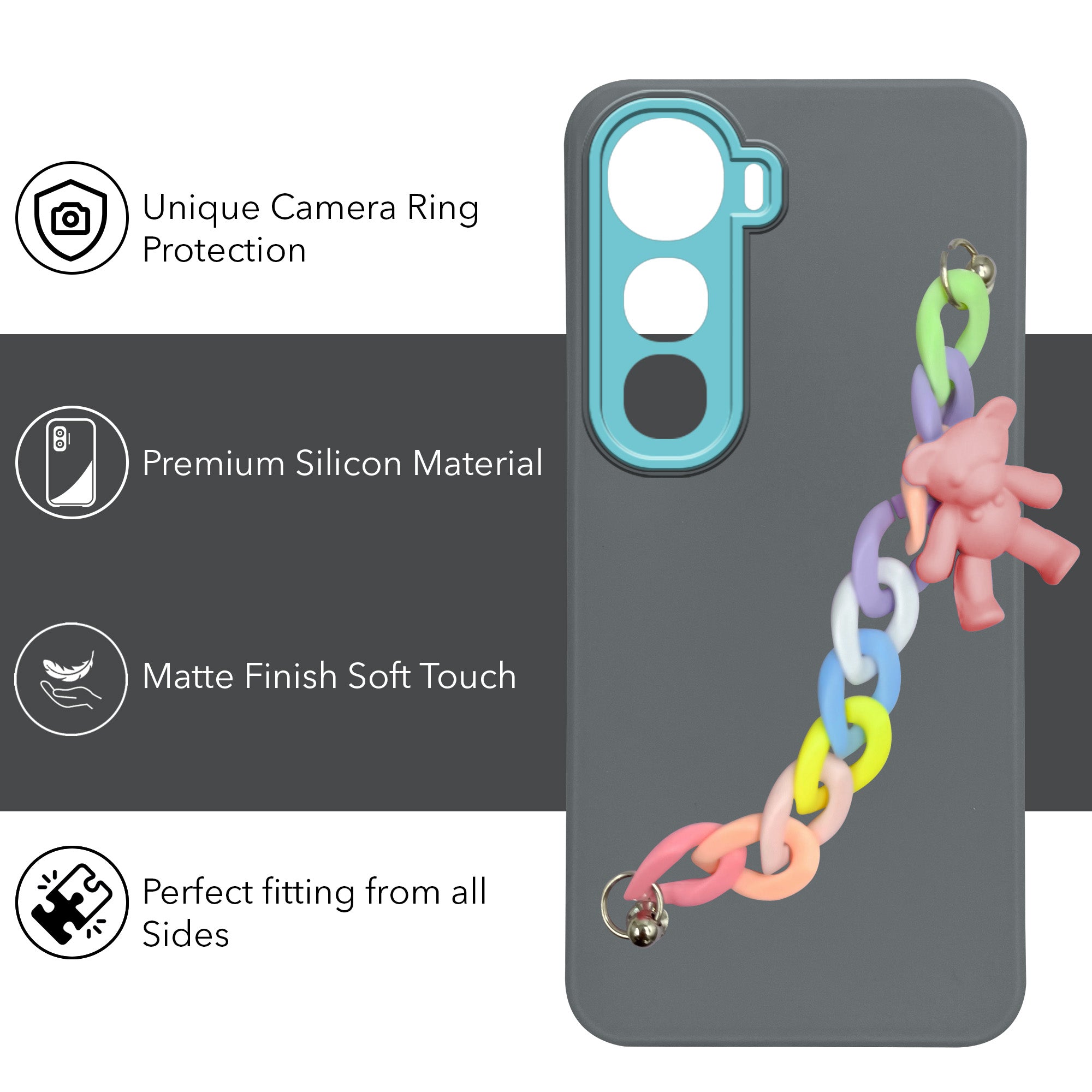 For Vivo Y400 Back Cover Case (Matte Finish |Wrist Hanging Chain | Teddy Bracelet Charms | Full Camera Protection)