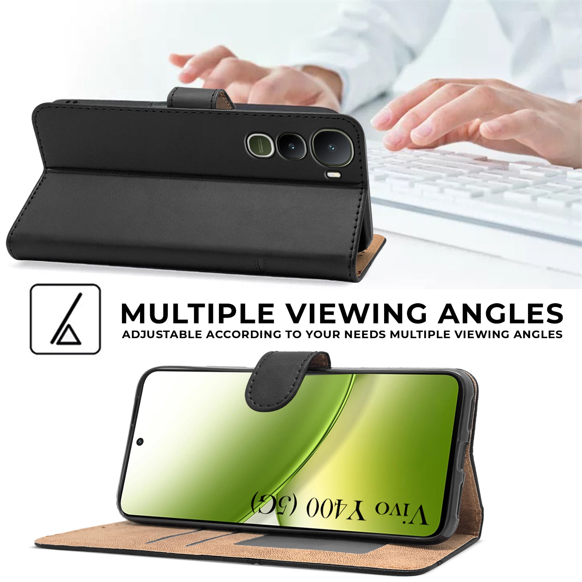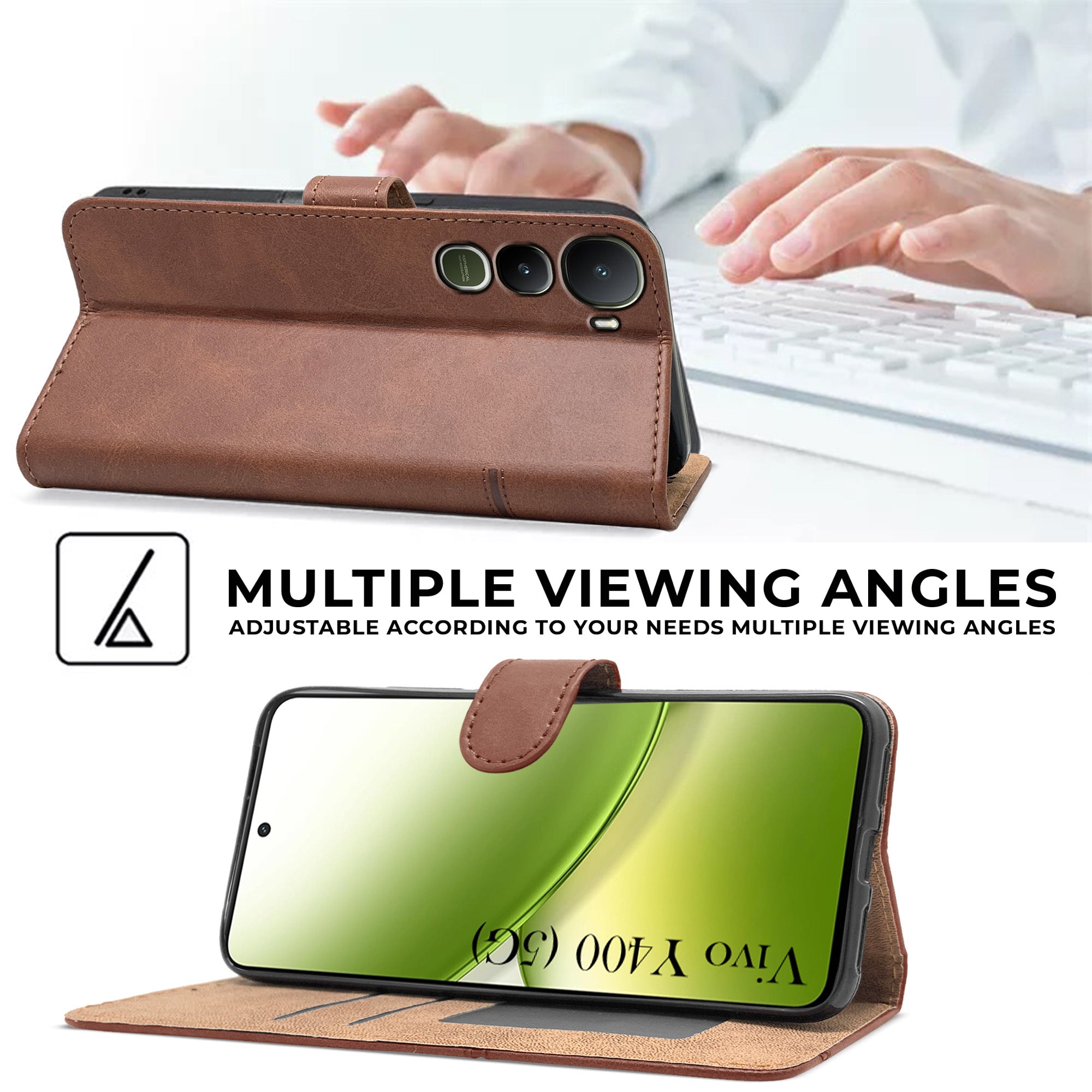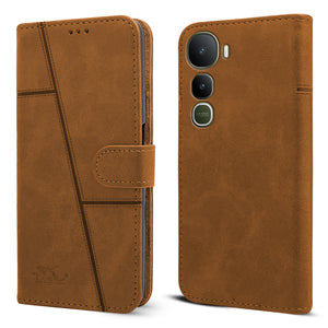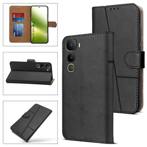 For Vivo Y400 Flip Case Cover ( Stitched Leather with Magnetic Closure)