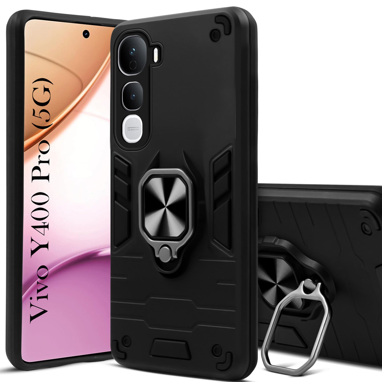 For Vivo Y400 Pro Back Cover Case (Shockproof Dual Layer Polycarbonate |Ring Holder Kickstand)