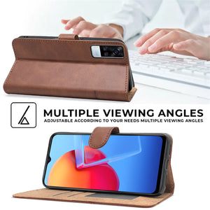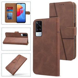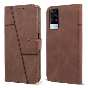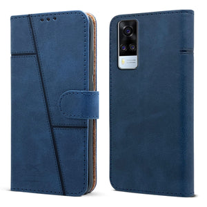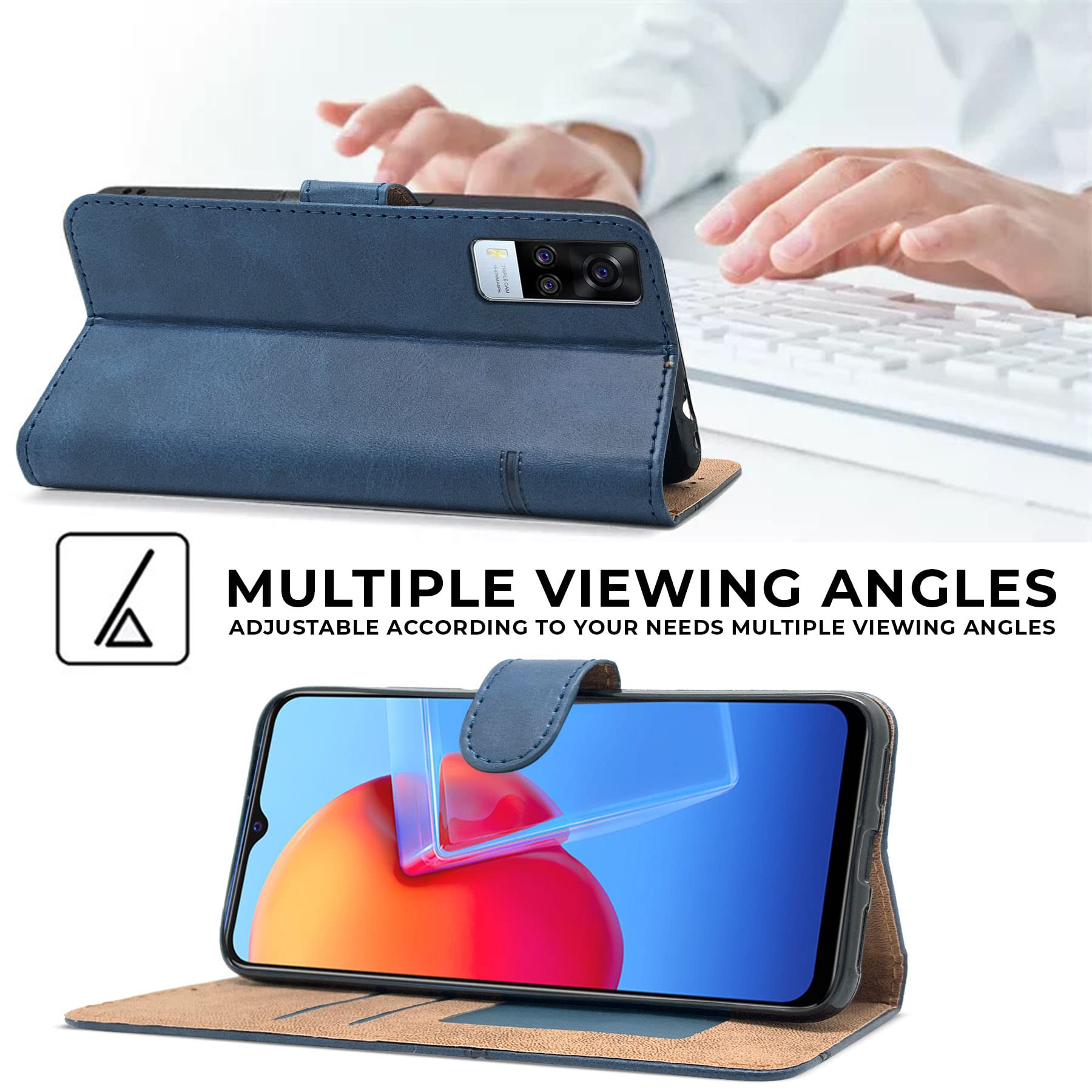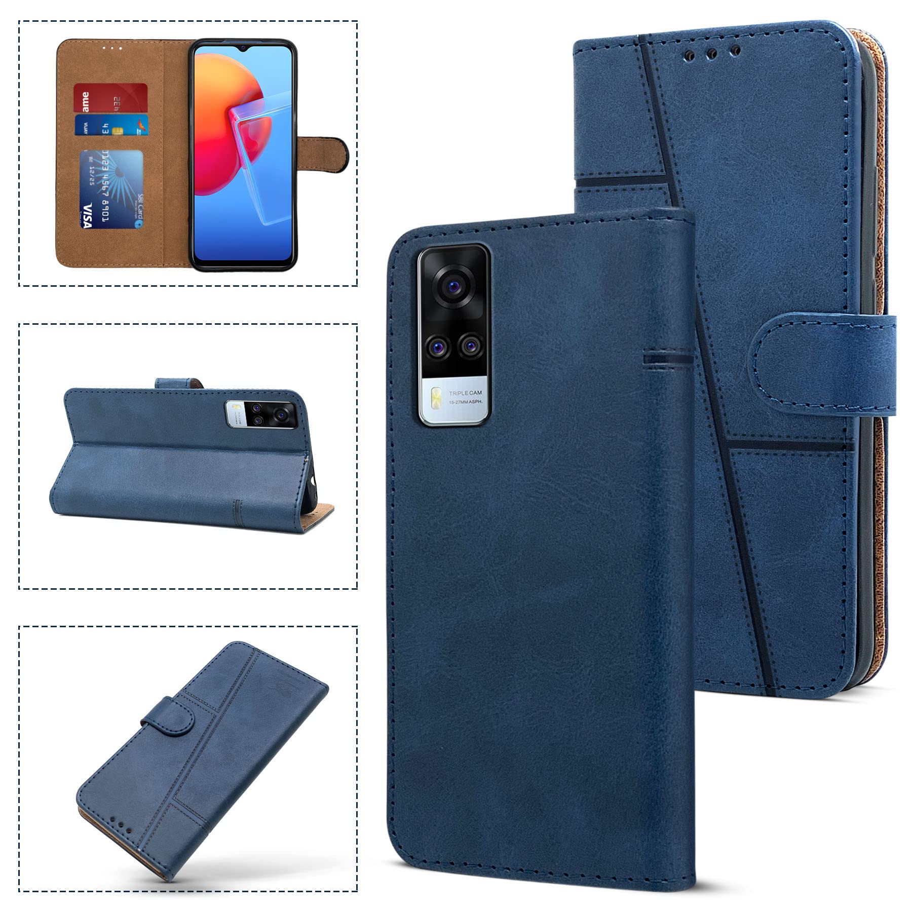 For Vivo Y53s 4G Flip Cover Case (Stitched Leather Finish | Magnetic Closure | Inner TPU | Foldable Stand | Wallet Card Slots | Blue)
