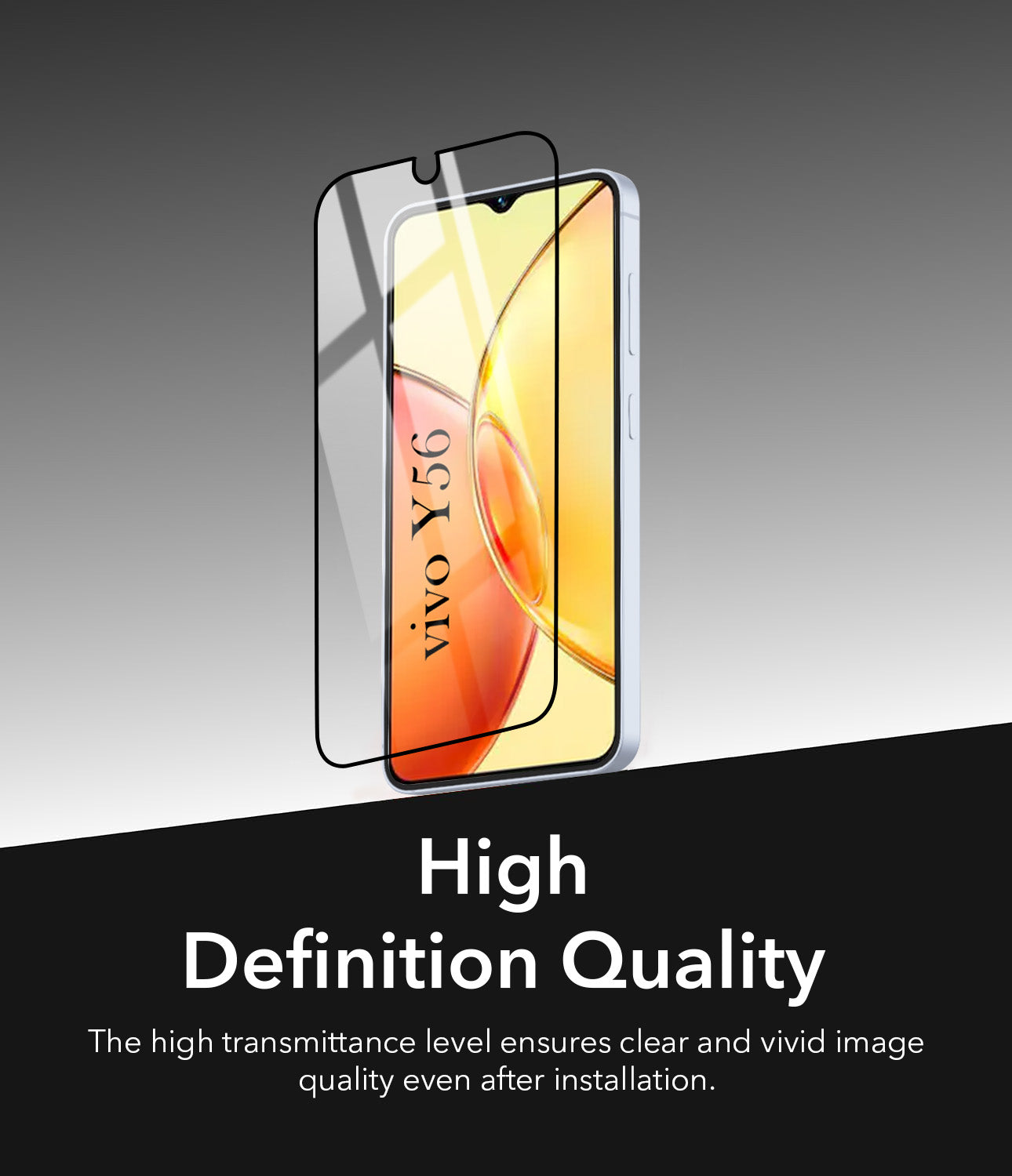 (Pack of 2) For Vivo Y56 5G Tempered Glass Military-Grade Gorilla Screen Protector With Installation Kit | Shatterproof, Full Coverage, HD Clear, Scratch Resistant