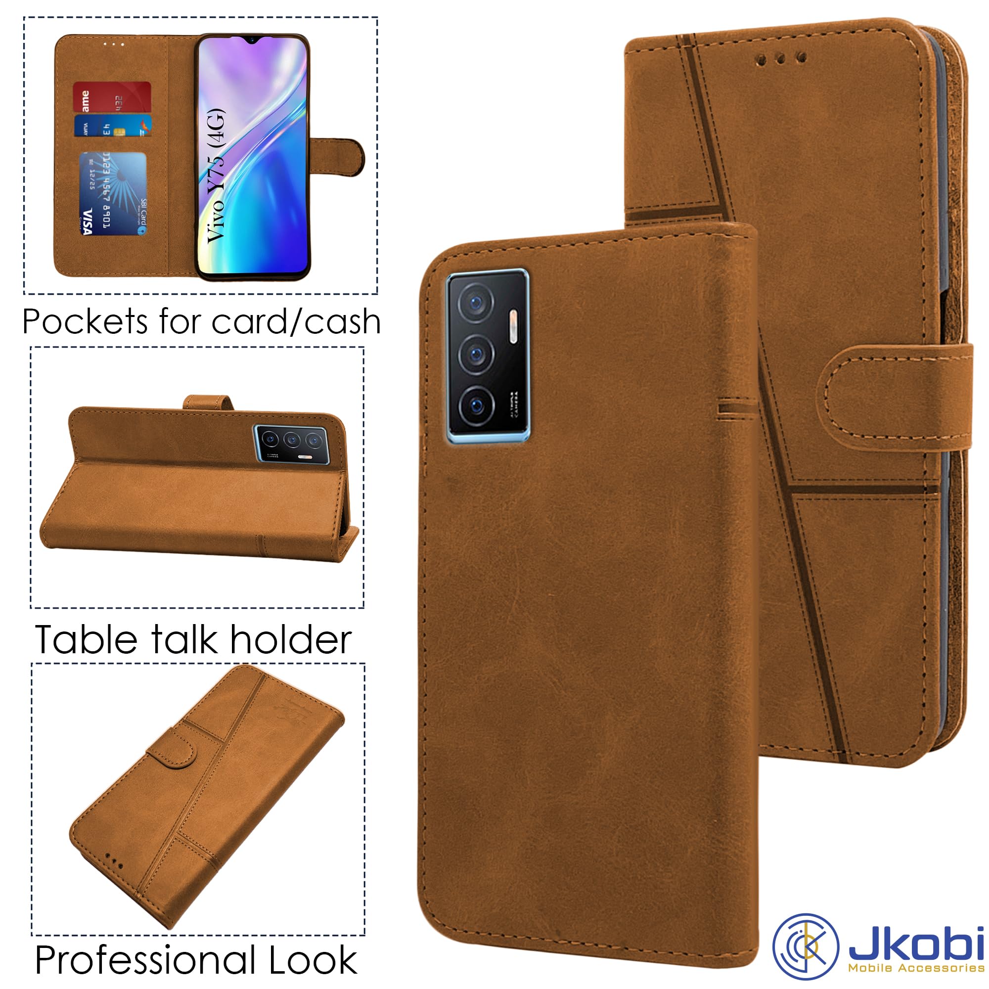 For Vivo Y75 4G Flip Cover Case (Stitched Leather with Magnetic Closure)