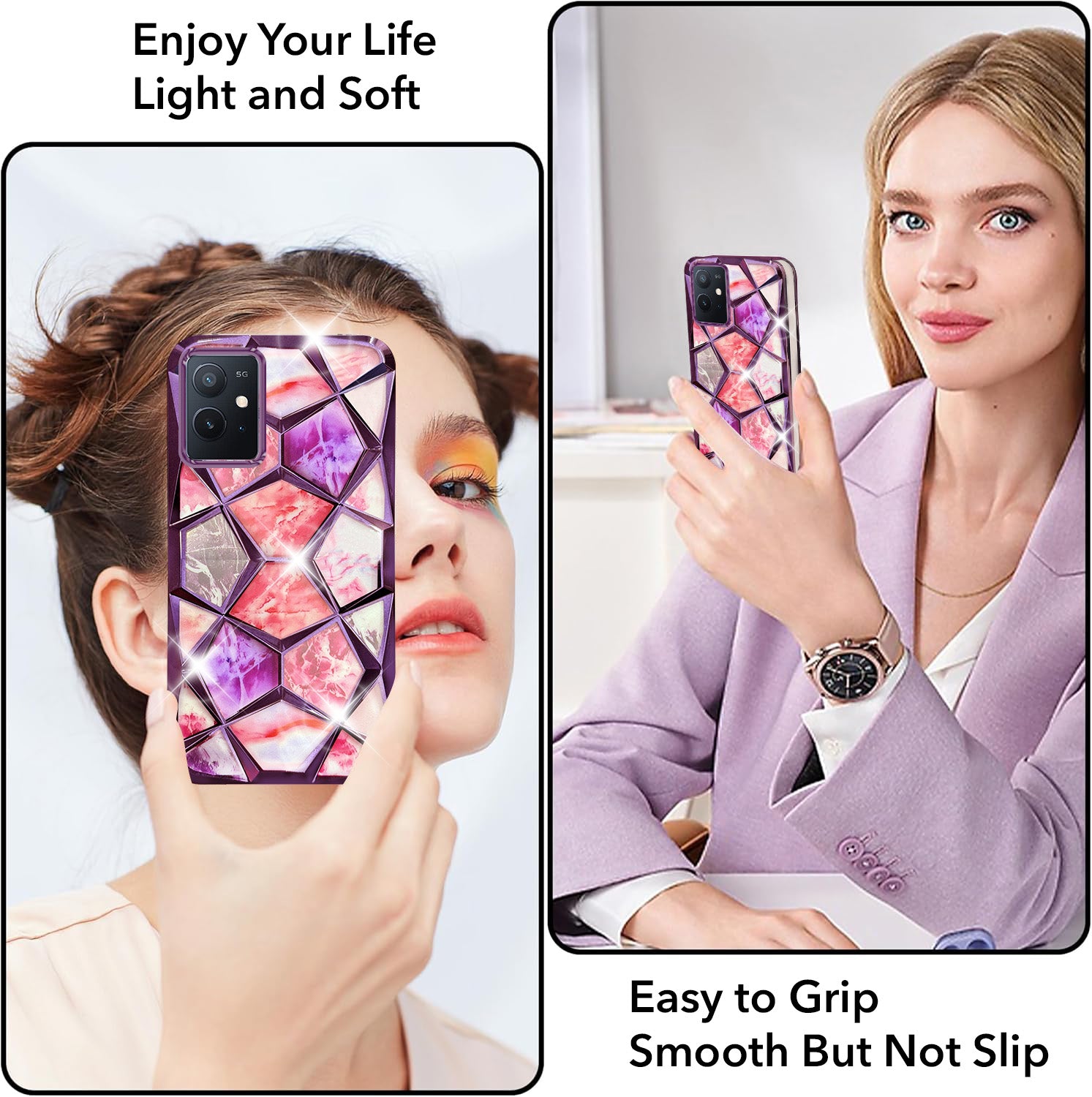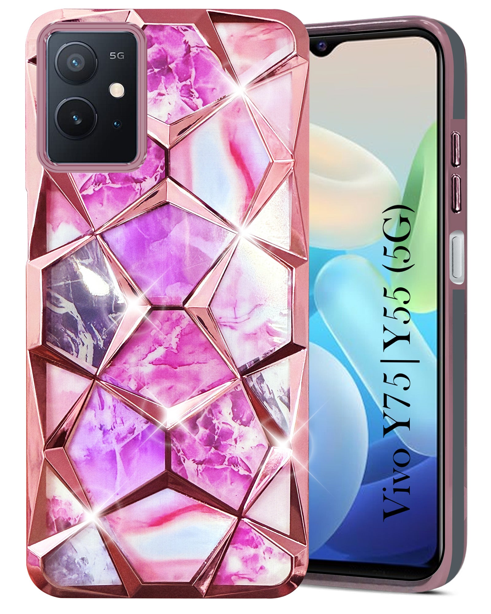 For Vivo Y75 5G | Y55 5G Back Cover Case (Dual Design Glitter Sparkle and Detachable Diamond Print Case | Soft and Flexible)