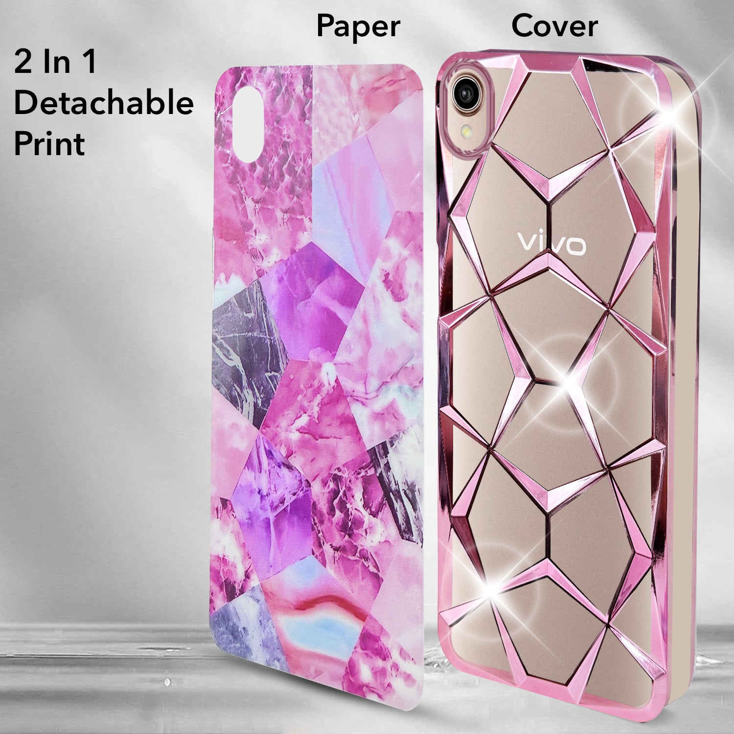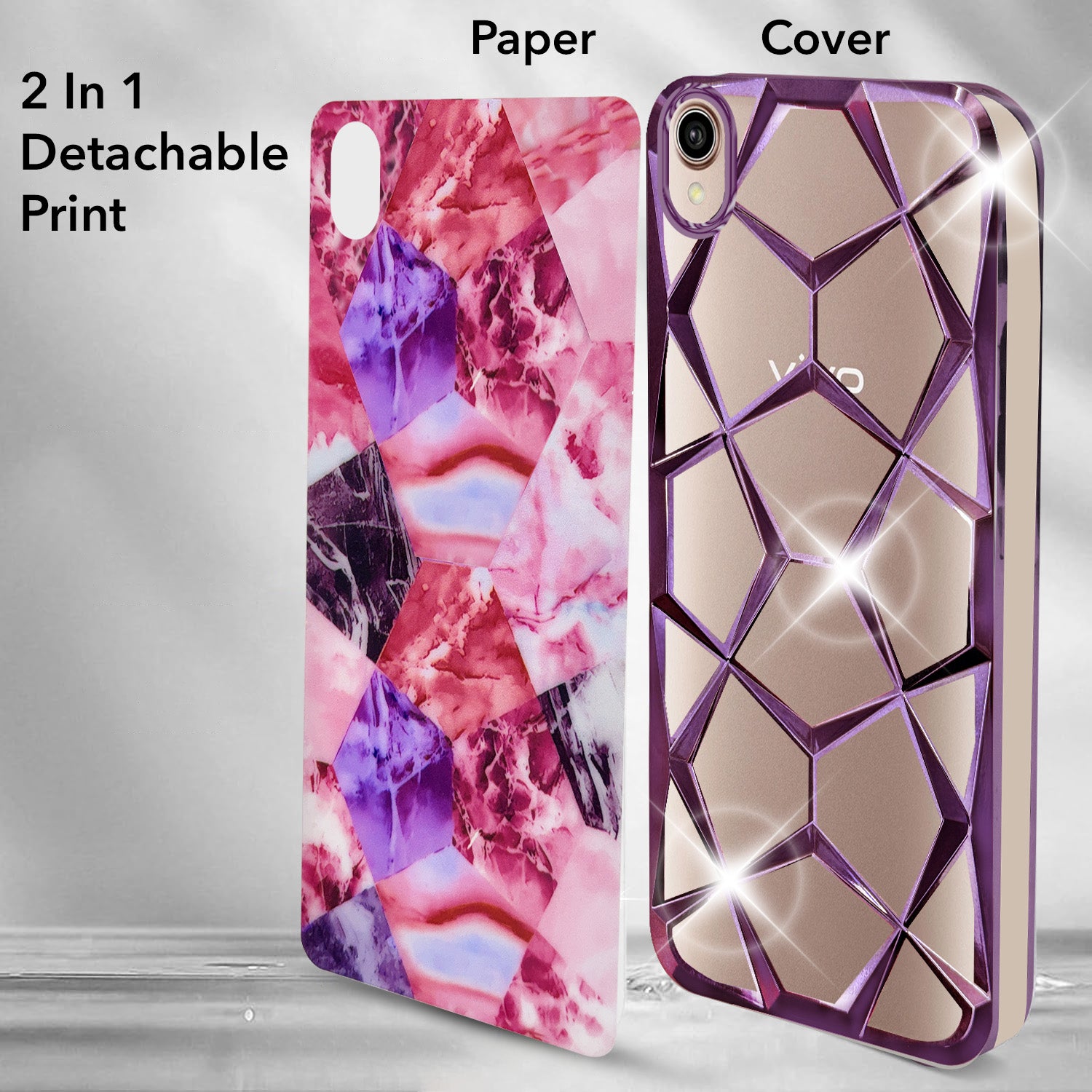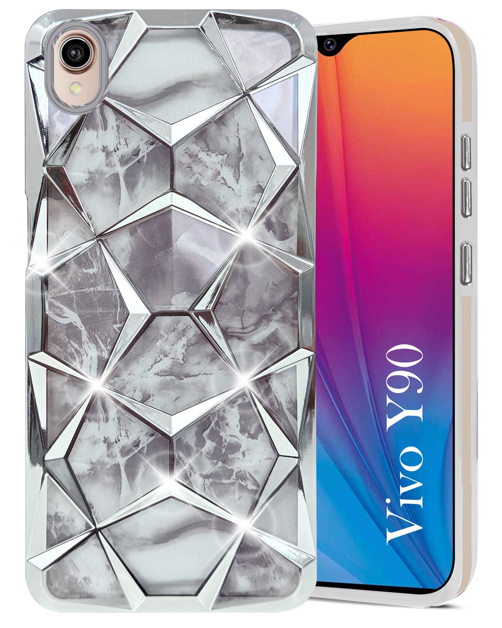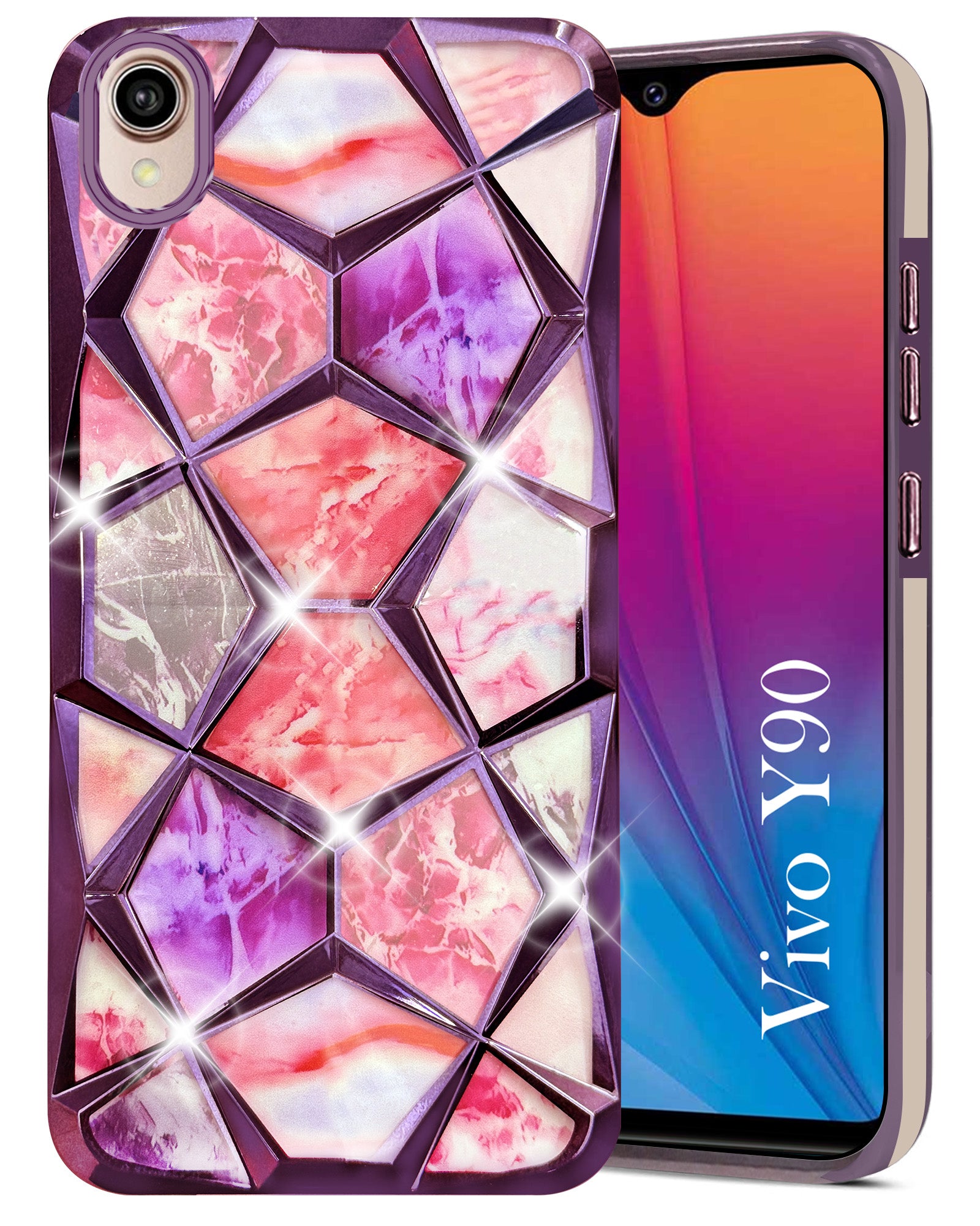 For Vivo Y90 Back Cover Case (Dual Design Glitter Sparkle and Detachable Diamond Print Case | Soft and Flexible)