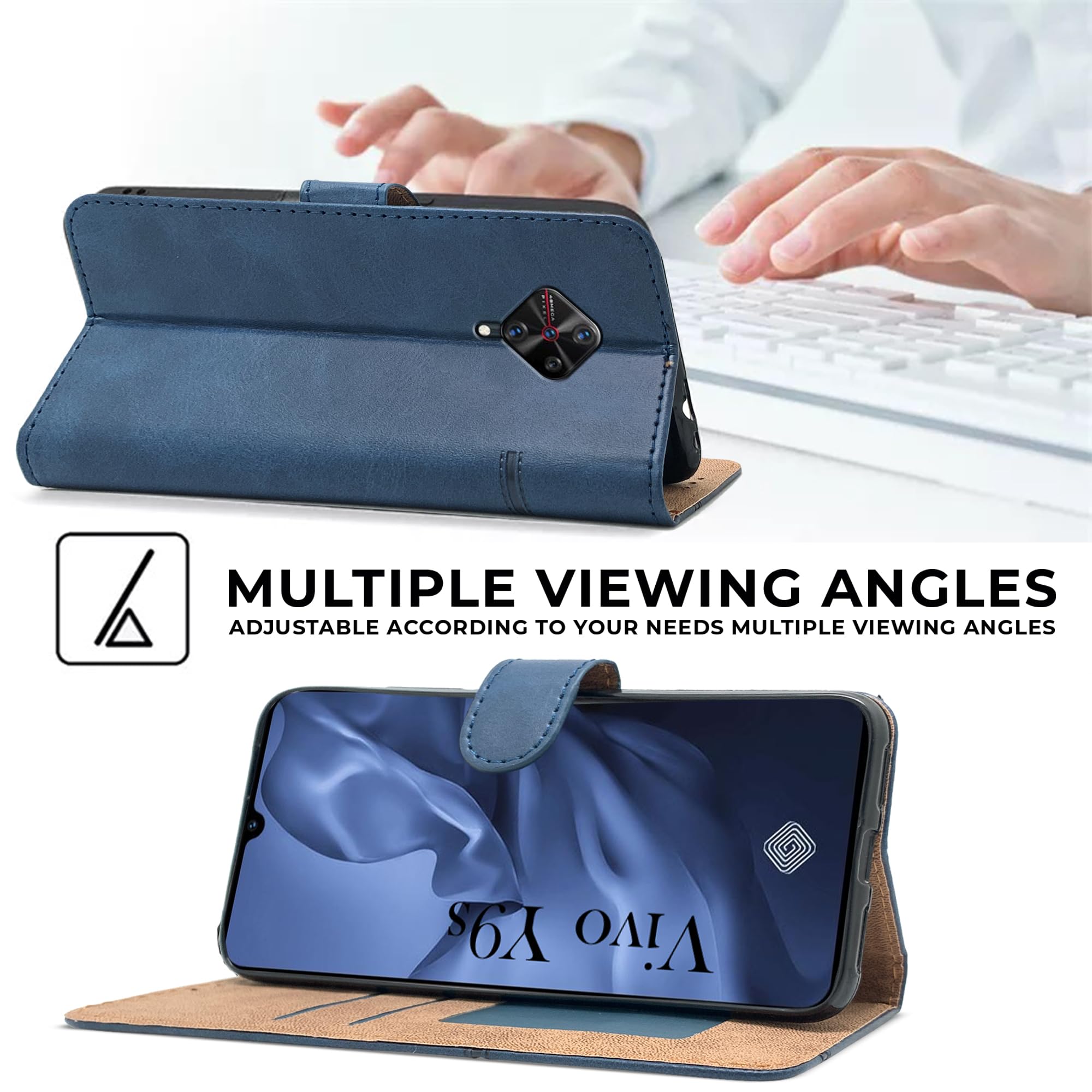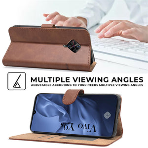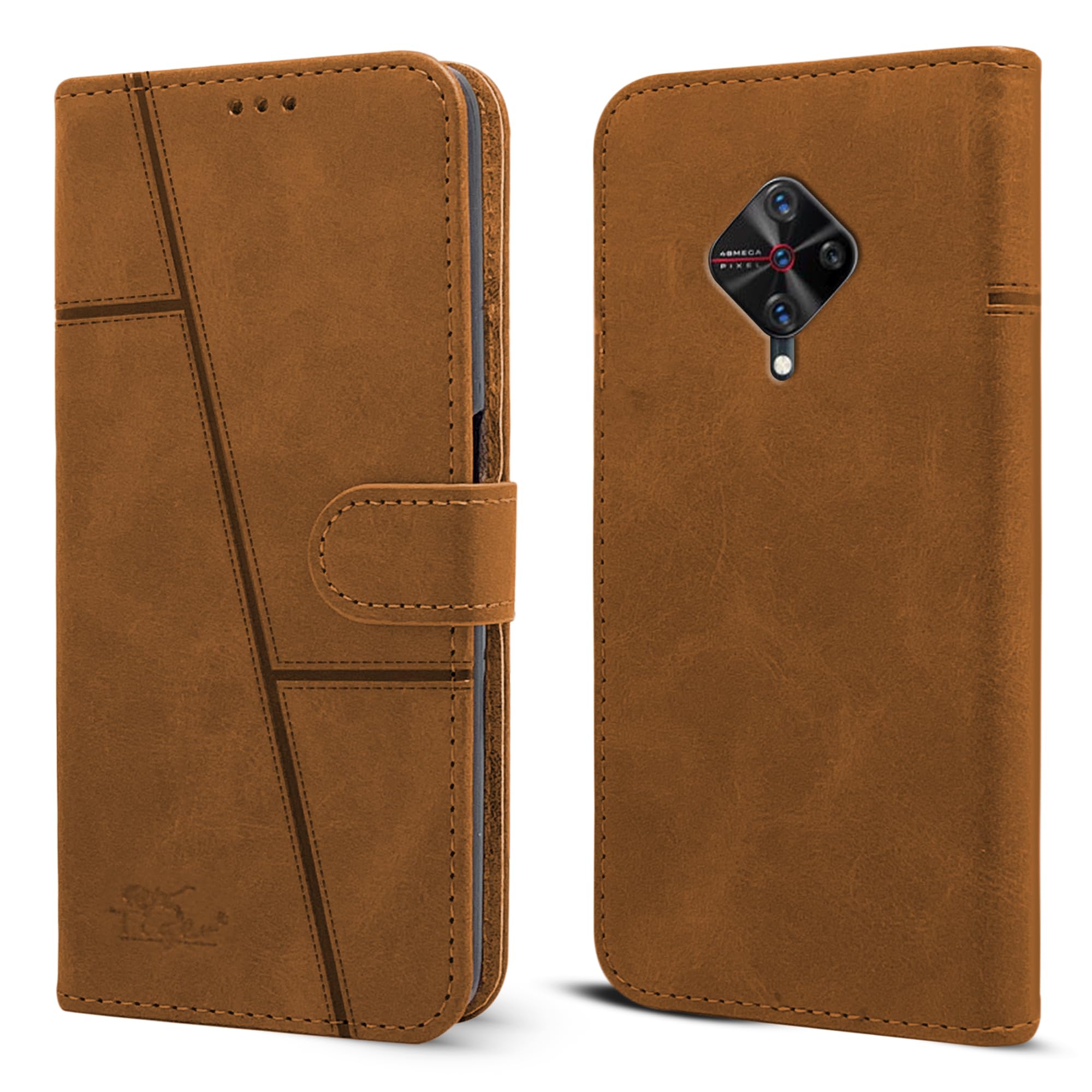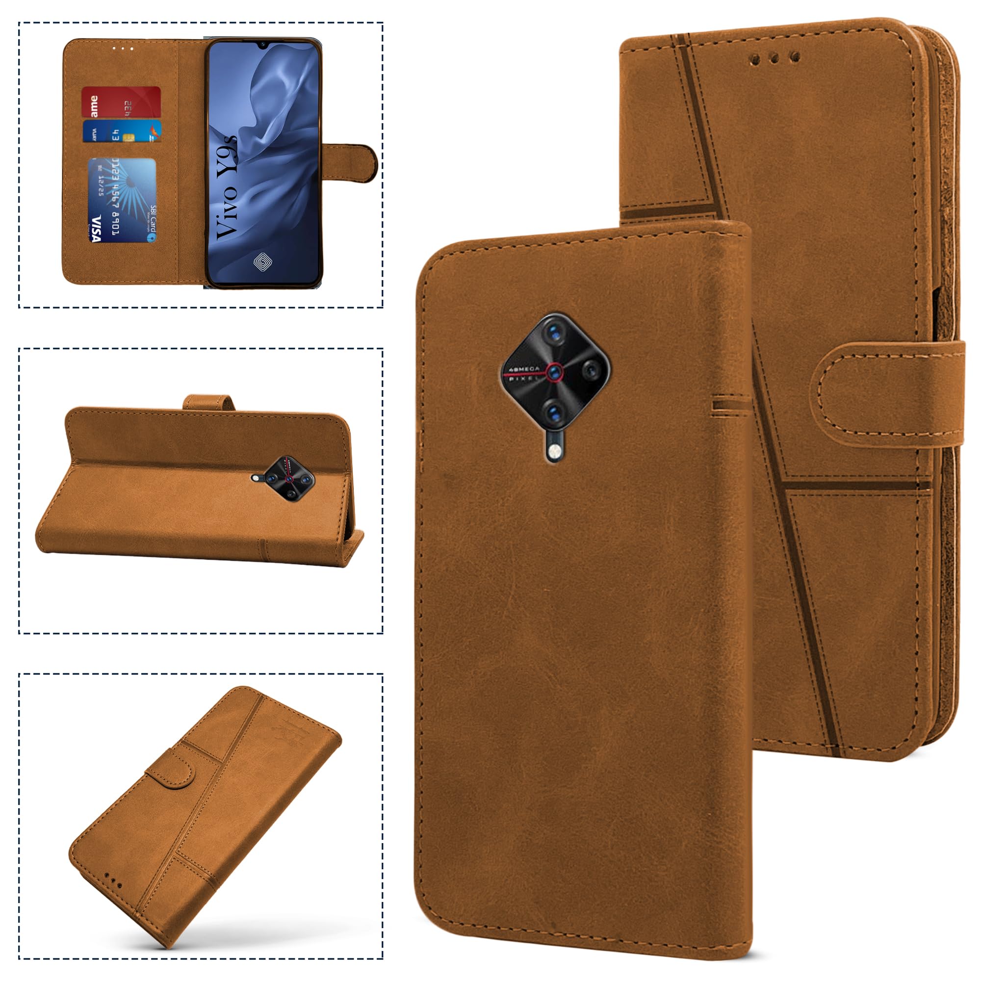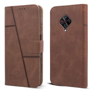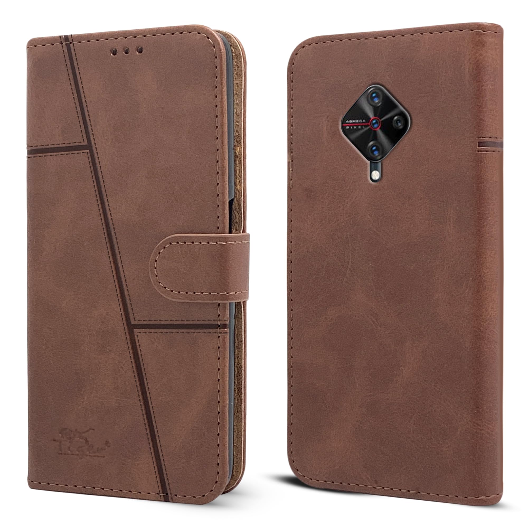 For Vivo Y9s Flip Cover Case ( Stitched Leather with Magnetic Closure)