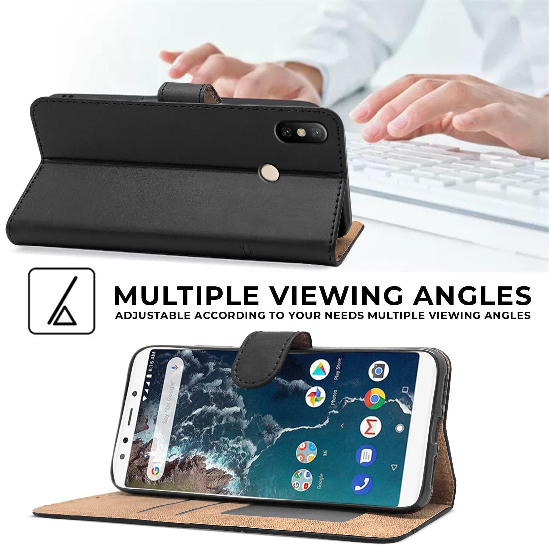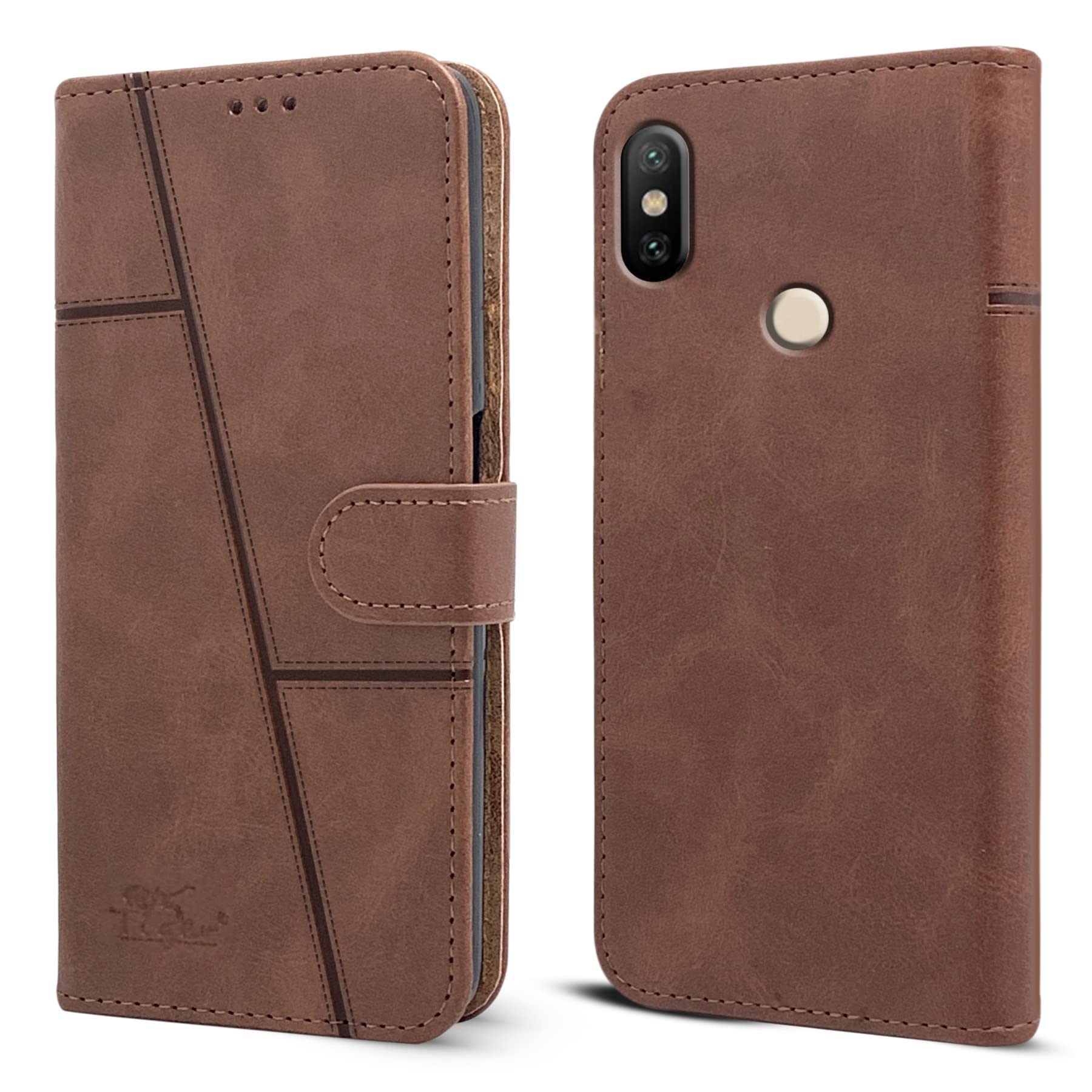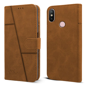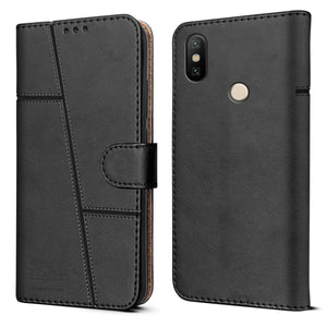 For Xiaomi Mi A2 Flip Cover Case ( Stitched Leather with Magnetic Closure | Black)