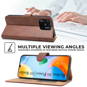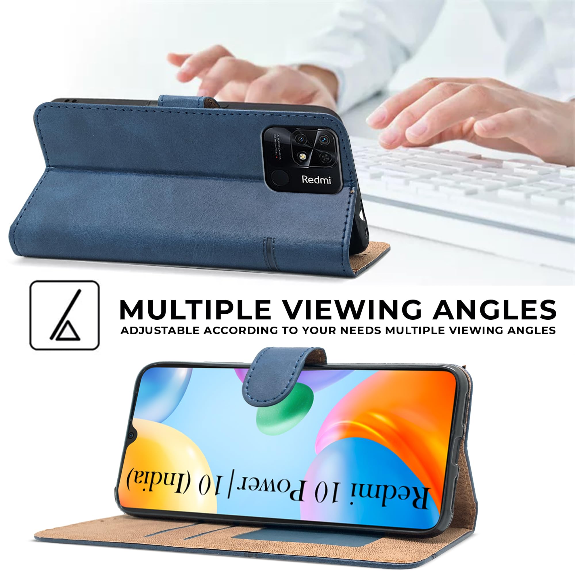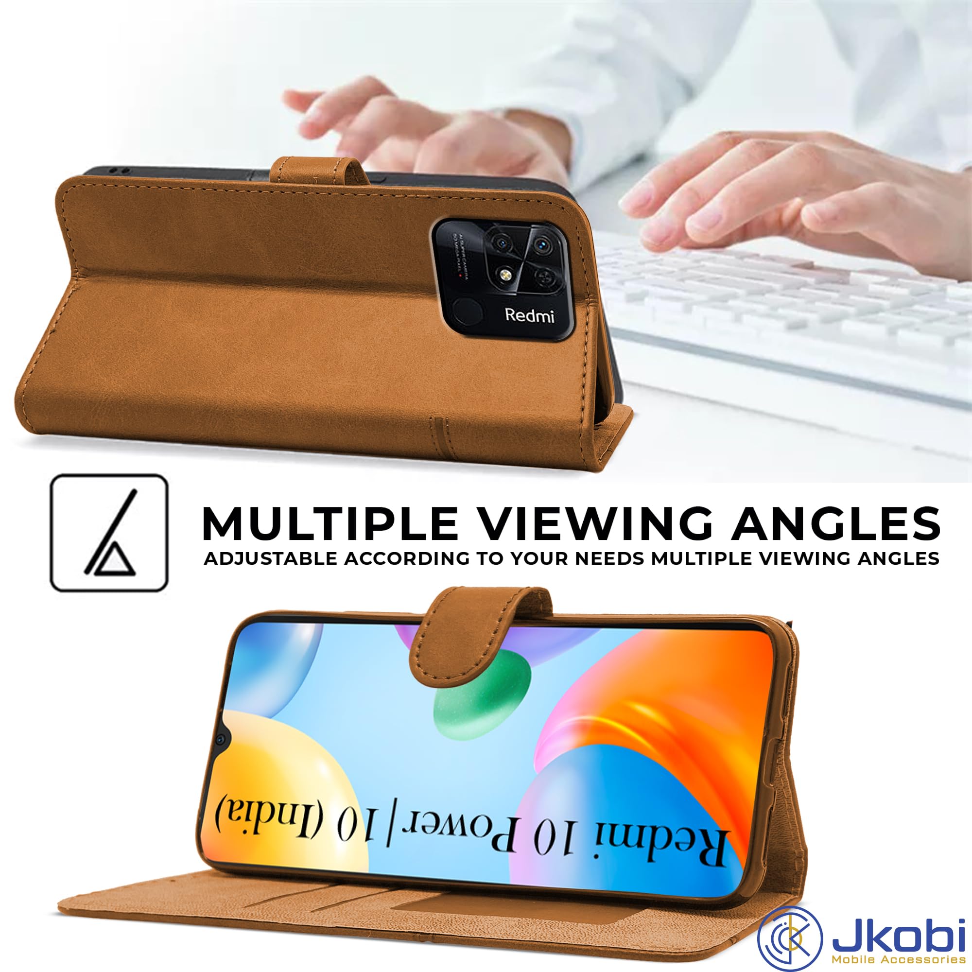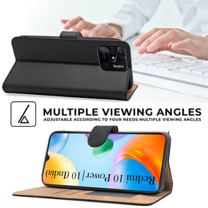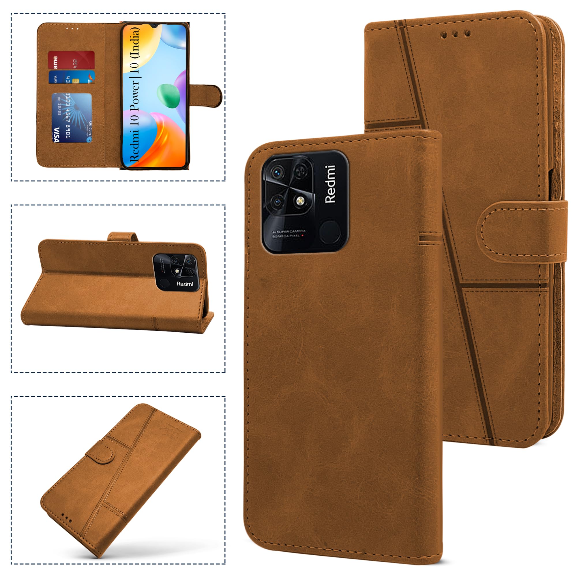 For Xiaomi Mi Redmi 10 Power | 10 (India) Flip Cover Case ( Stitched Leather with Magnetic Closure)