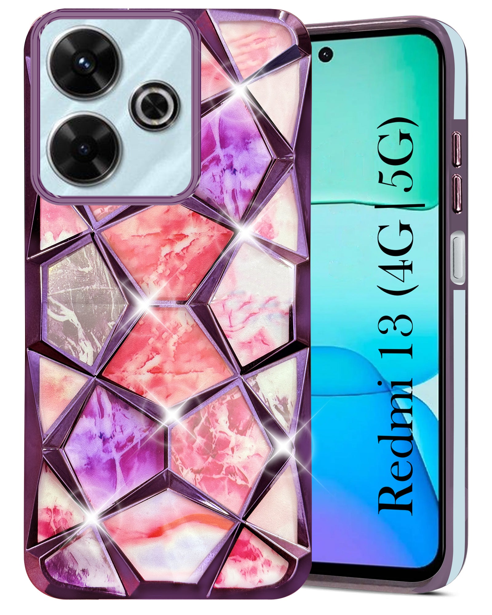 For Xiaomi Mi Redmi 13 4G | 5G Back Cover Case ( Dual Design Glitter Sparkle and Detachable Diamond Print Case | Soft and Flexible)