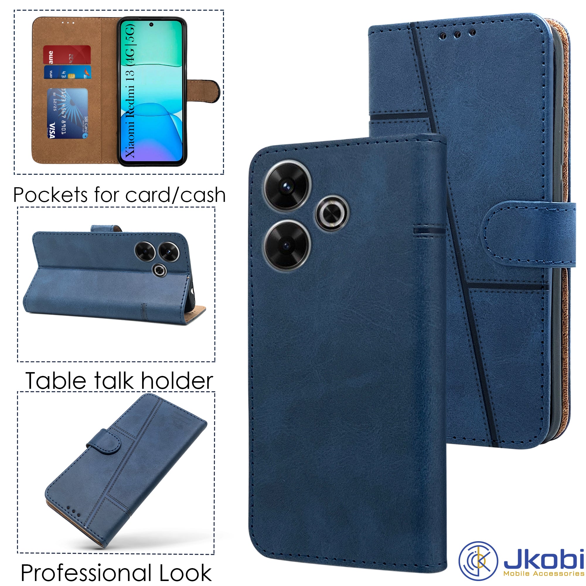For Xiaomi Mi Redmi 13 4G | 5G Flip Cover Case (Stitched Leather with Magnetic Closure)