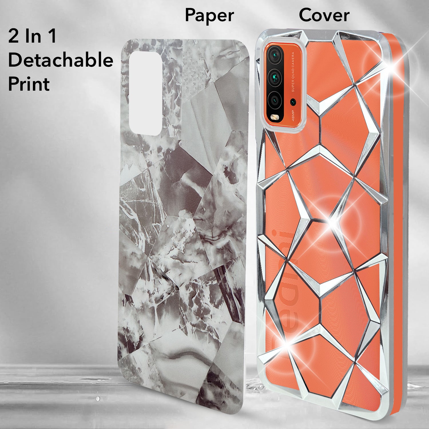For Xiaomi Mi Redmi 9 Power Back Cover Case ( Dual Design Glitter Sparkle and Detachable Diamond Print Case | Soft and Flexible)