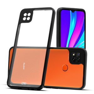 For Xiaomi Mi Redmi 9 | Redmi 9 Active Back Cover Case (PC - Crystal Clear | Flexible Glass Back | Camera Protection | Airbag Shockproof Grip | Classic Black)