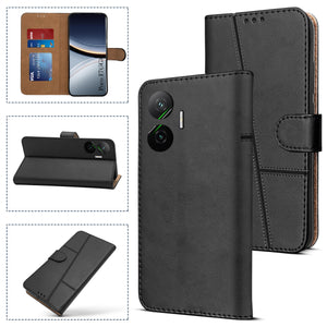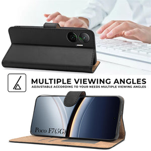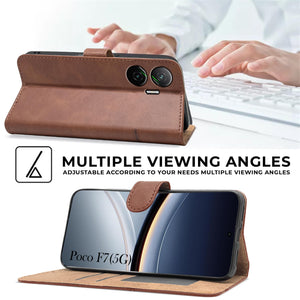 For Xiaomi Poco F7 5G Flip Cover Case ( Stitched Leather with Magnetic Closure)