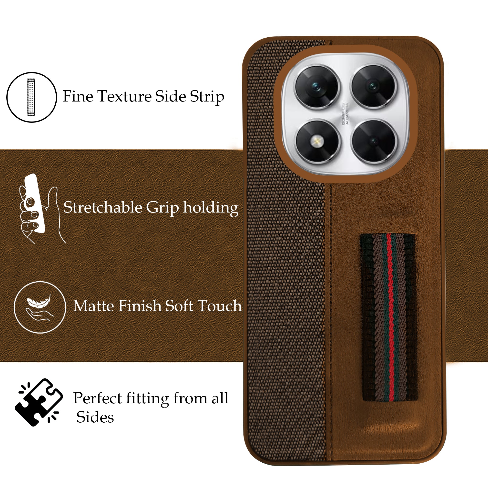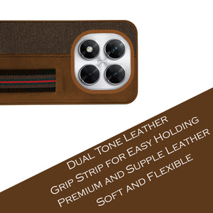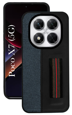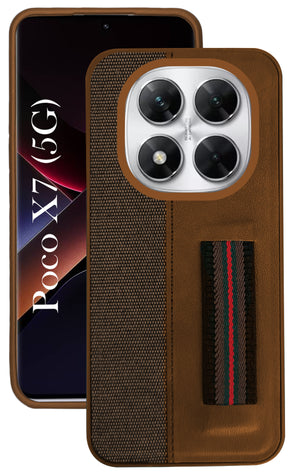 For Xiaomi Poco X7 Back Cover Case ( Professional PU Leather | Strip Chain Holder Socket)