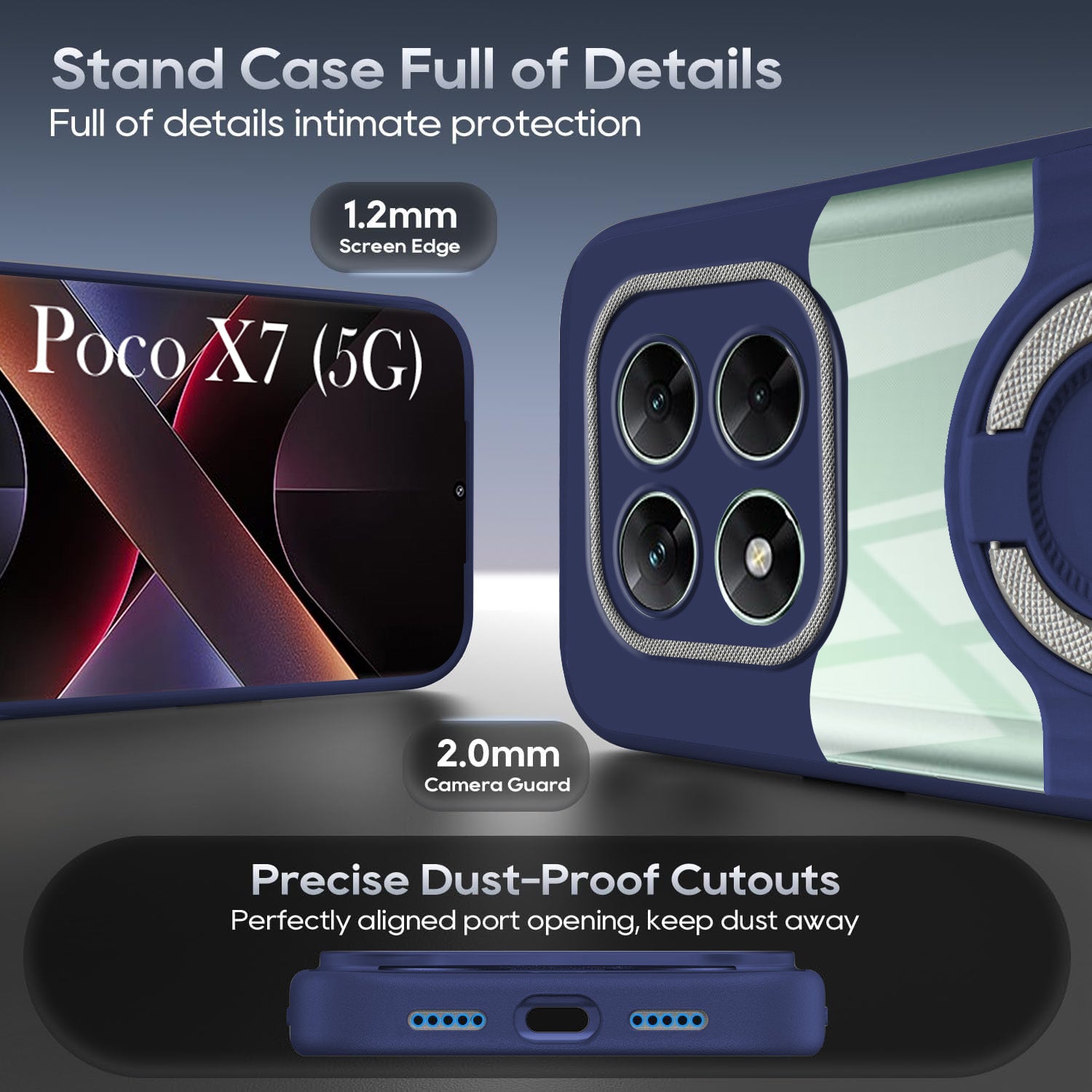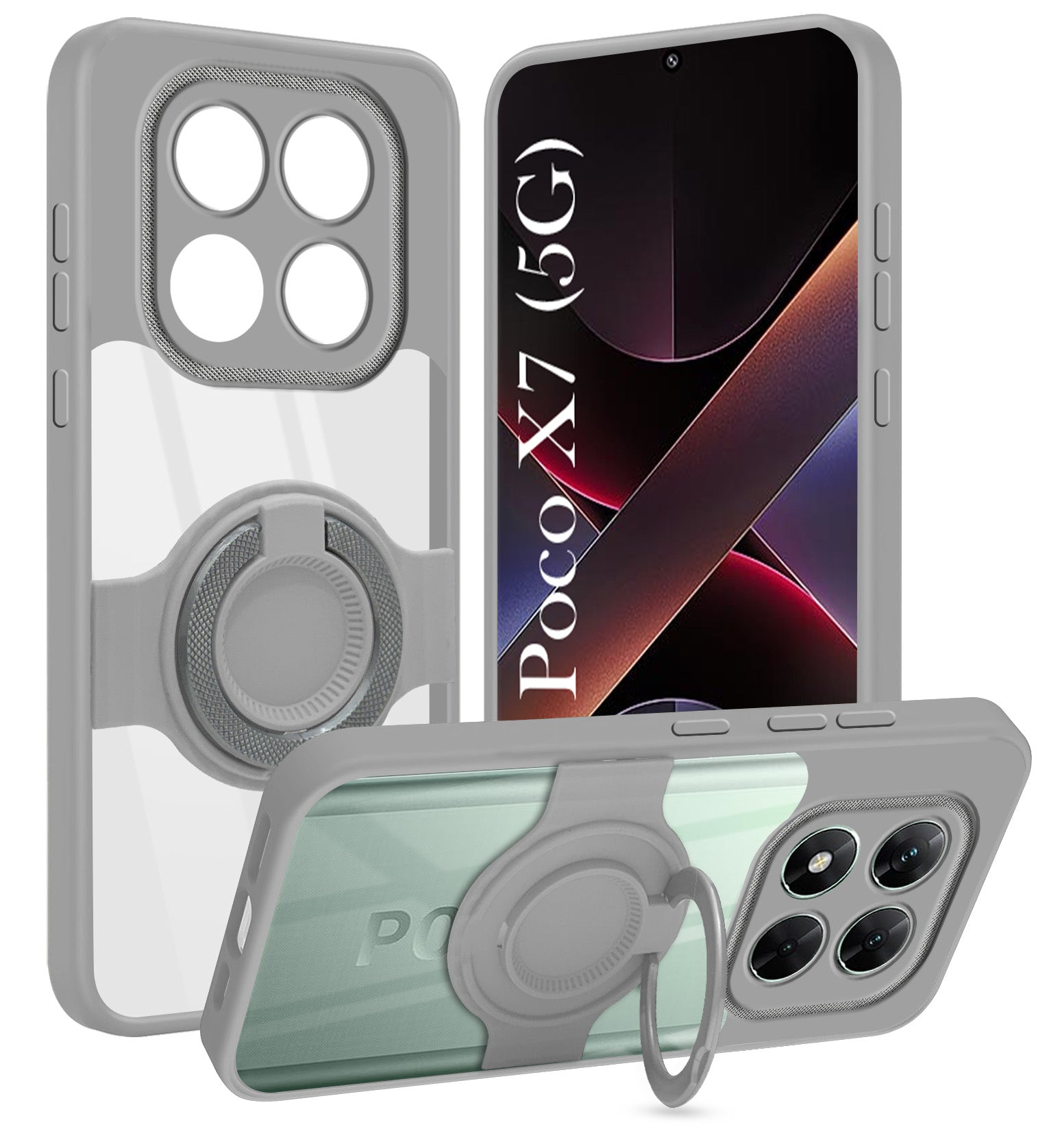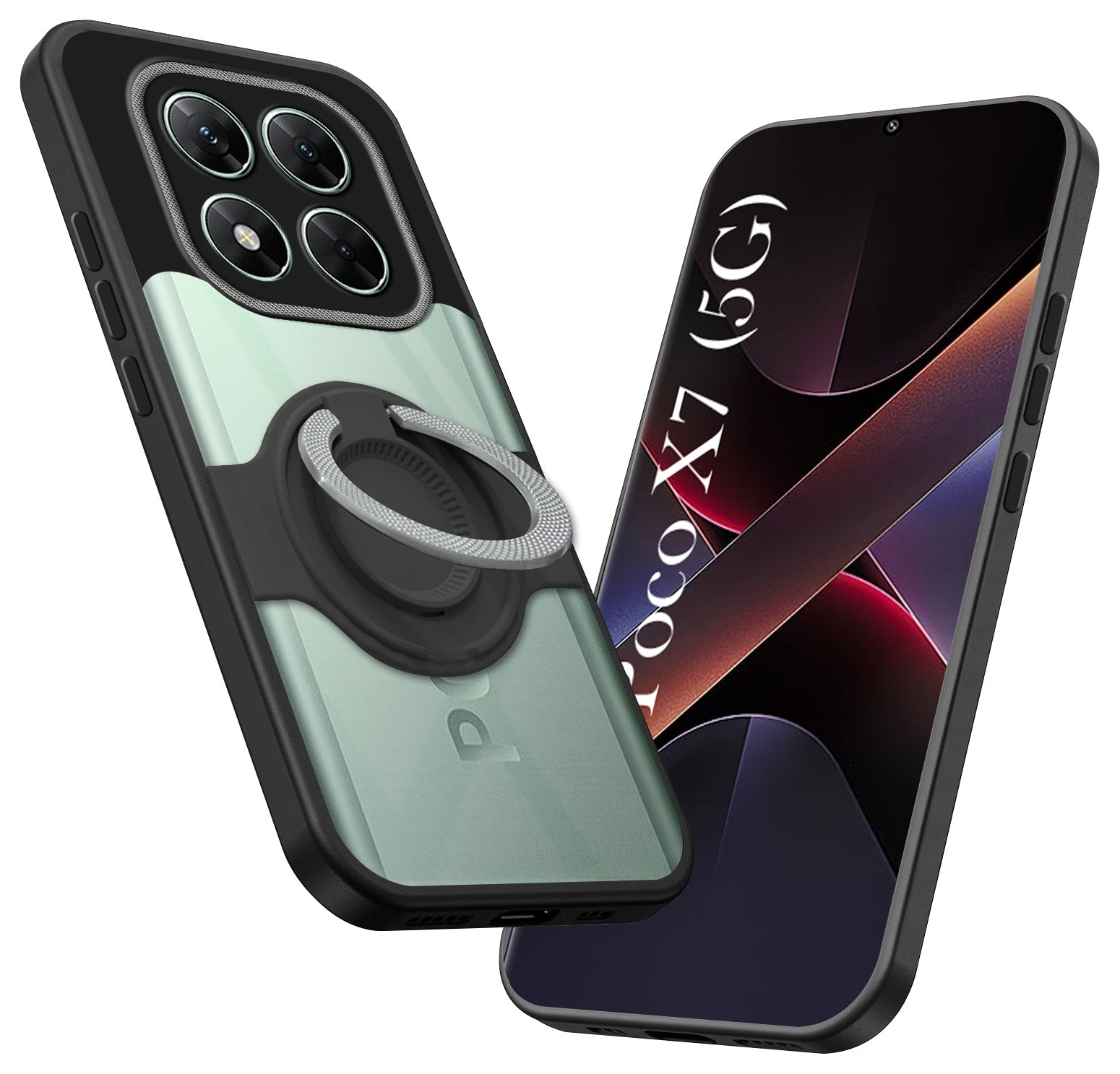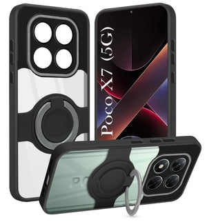 For Xiaomi Poco X7 Back Cover Case with stand (Built-in Ring Holder Kickstand | Lifetime Anti Yellow | Camera Protection)