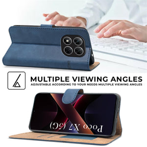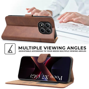 For Xiaomi Poco X7 Flip Cover Case ( Stitched Leather with Magnetic Closure)