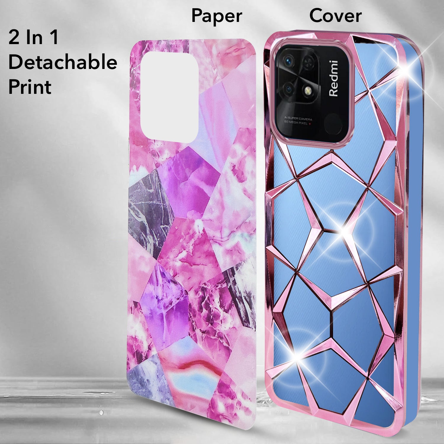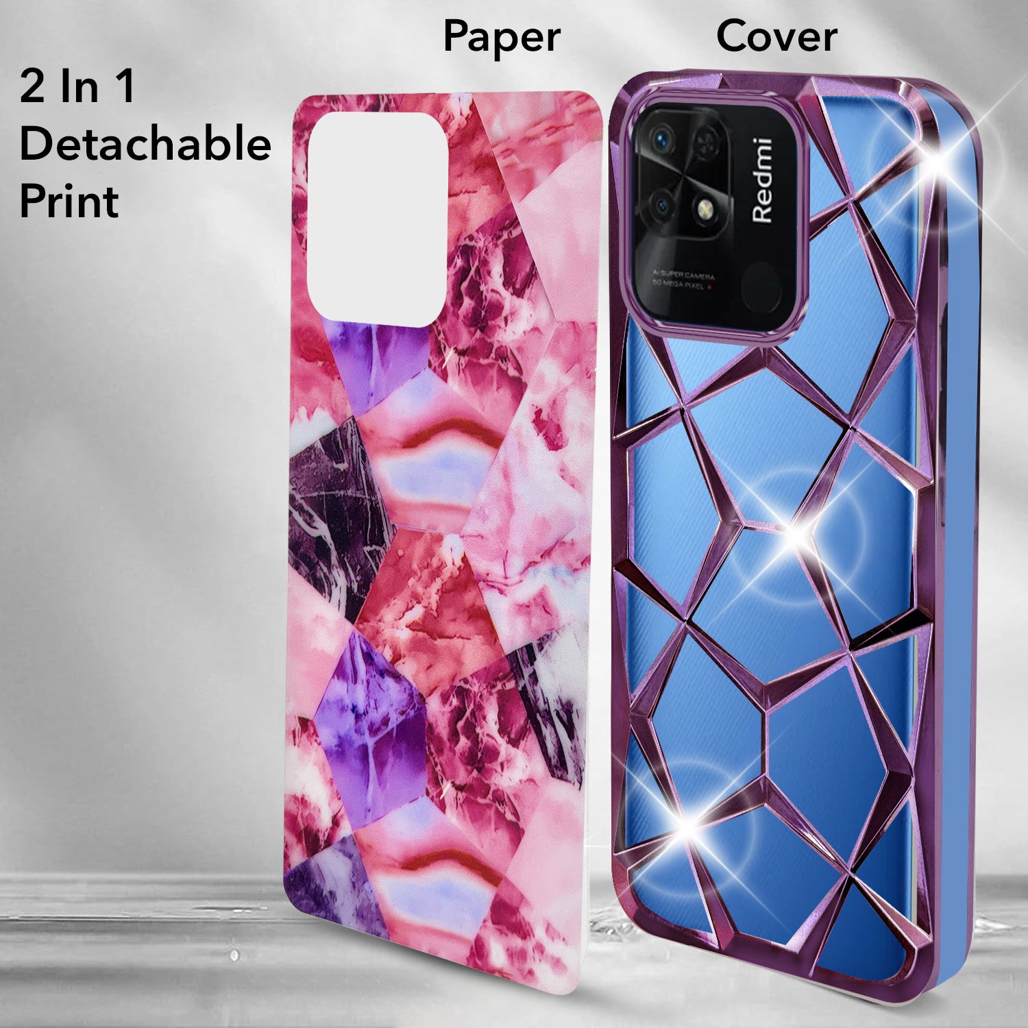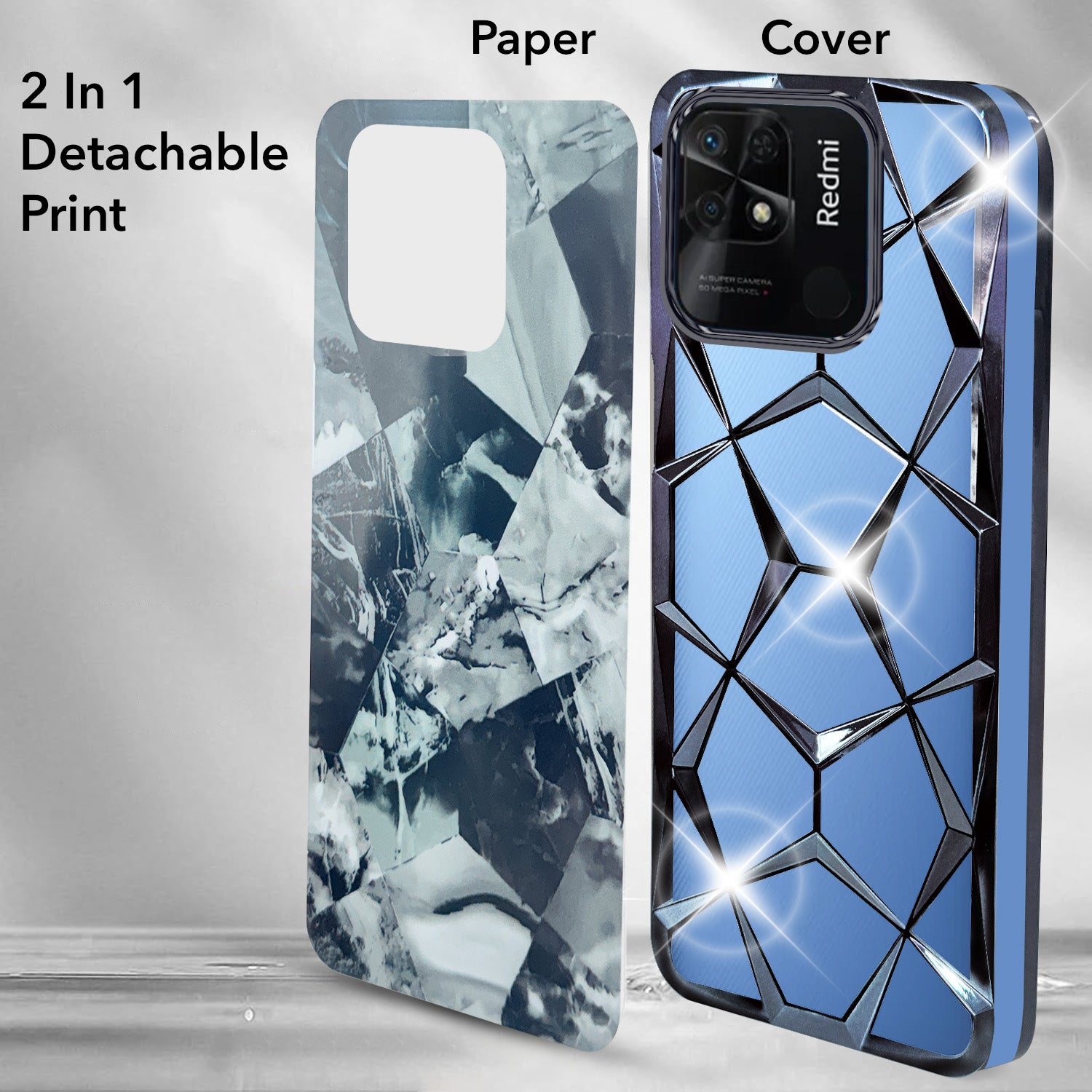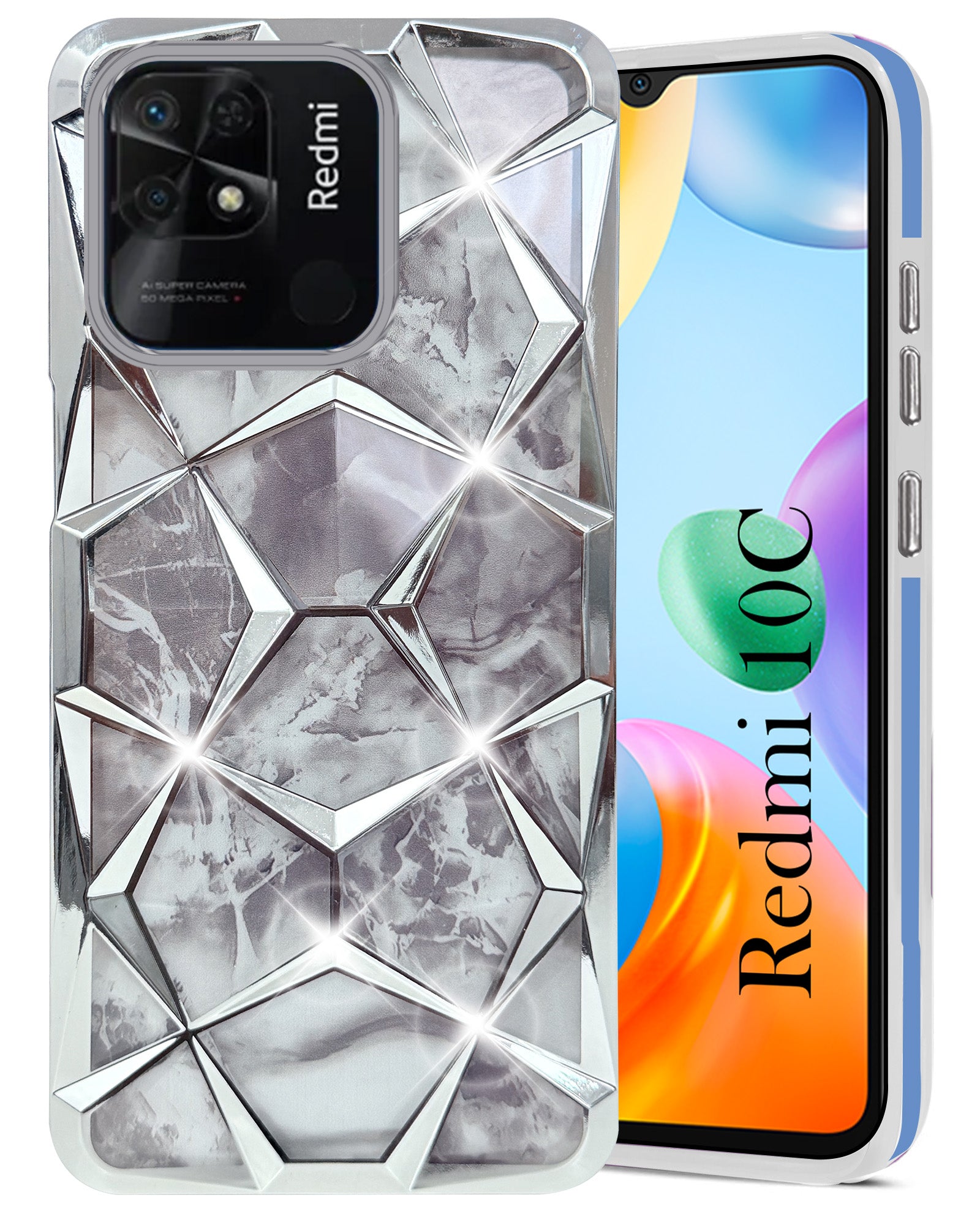 For Xiaomi Redmi 10C Back Cover Case ( Dual Design Glitter Sparkle and Detachable Diamond Print Case | Soft and Flexible)