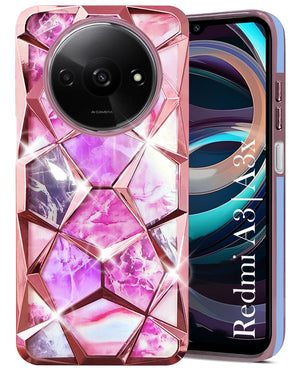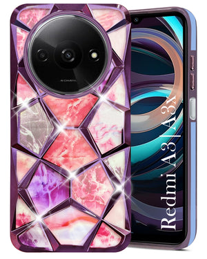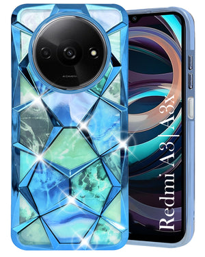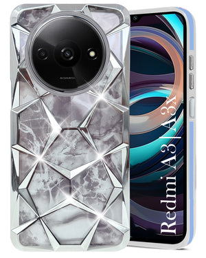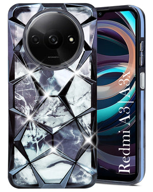 For Xiaomi Redmi A3 2024 | A3X Back Cover Case (Dual Design Glitter Sparkle and Detachable Diamond Print Case | Soft and Flexible)
