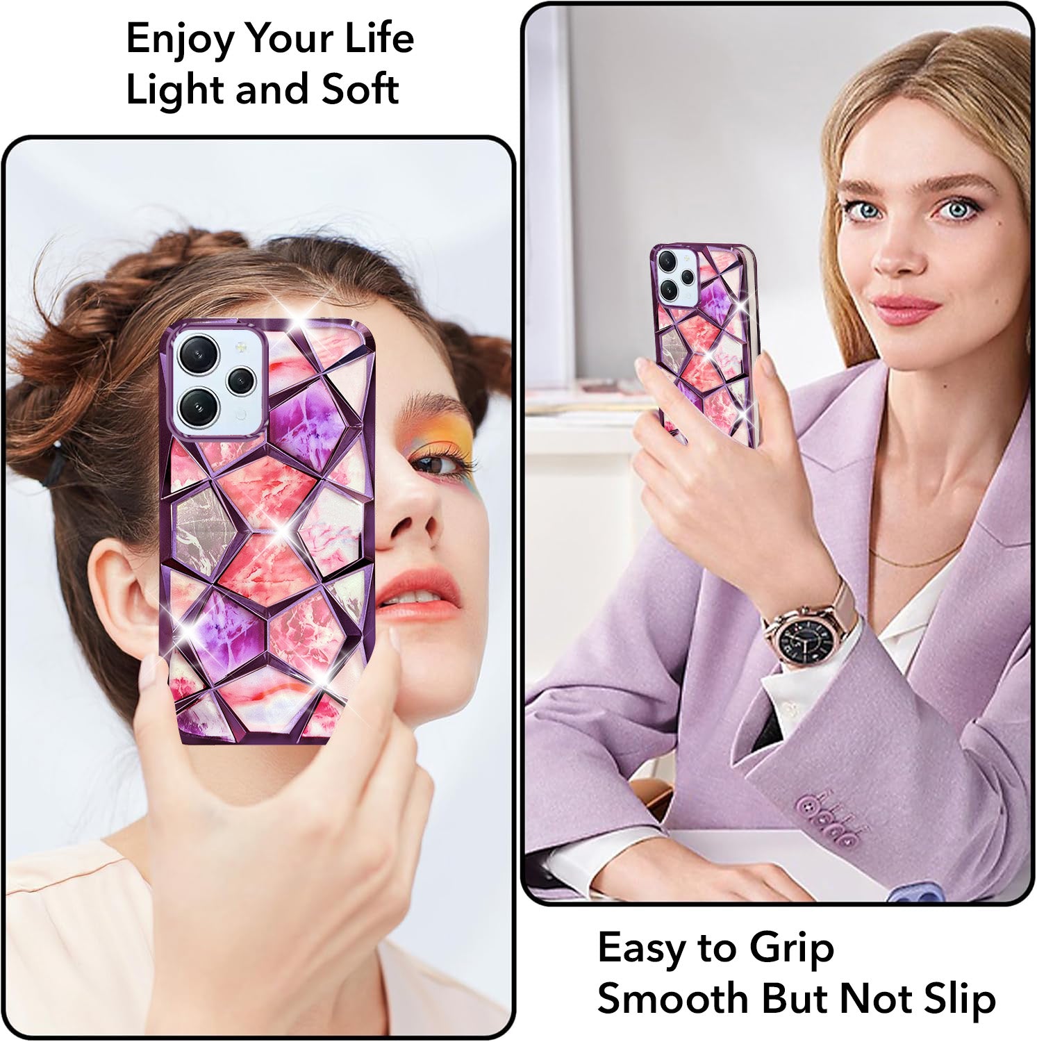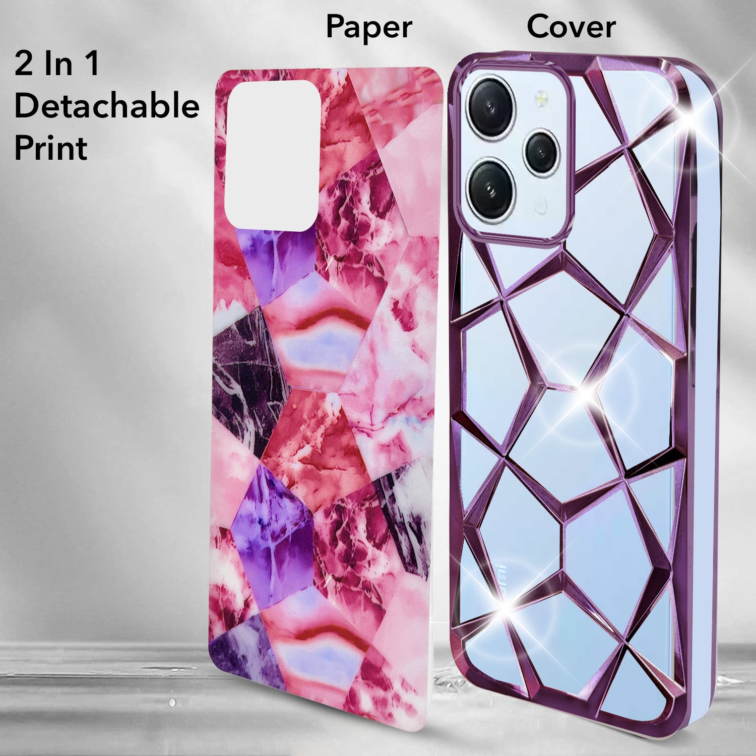 For Redmi 12 4G Back Cover Case (Dual Design Glitter Sparkle and Detachable Diamond Print Case | Soft and Flexible)