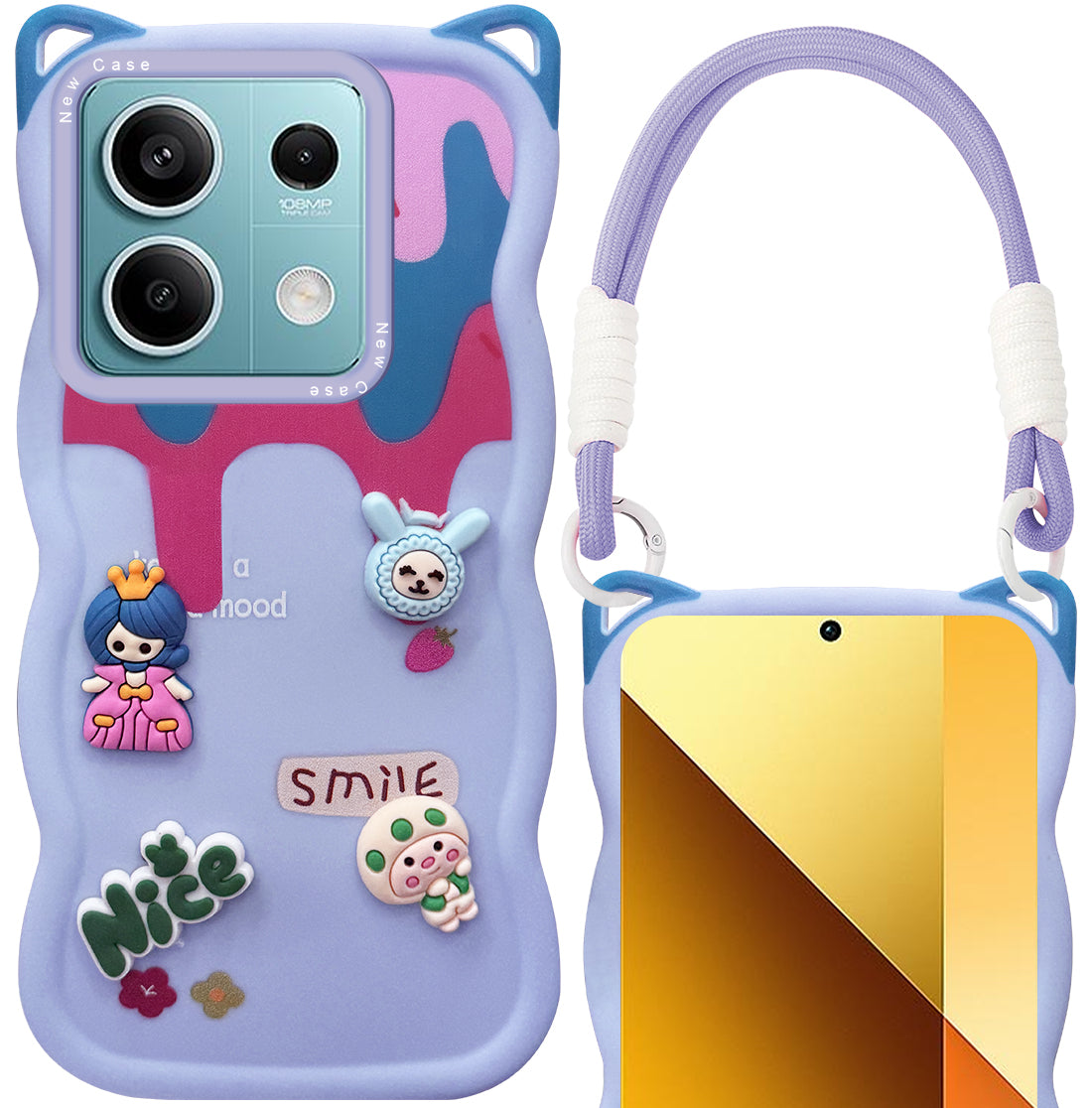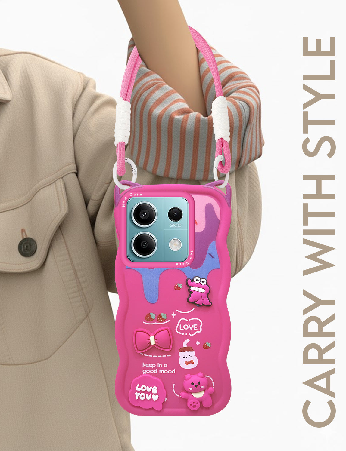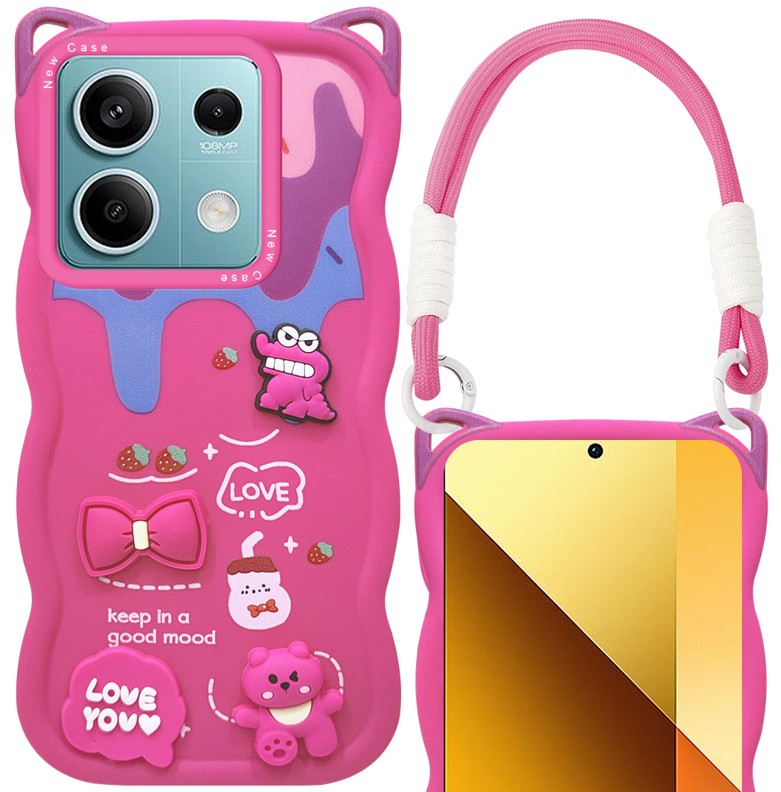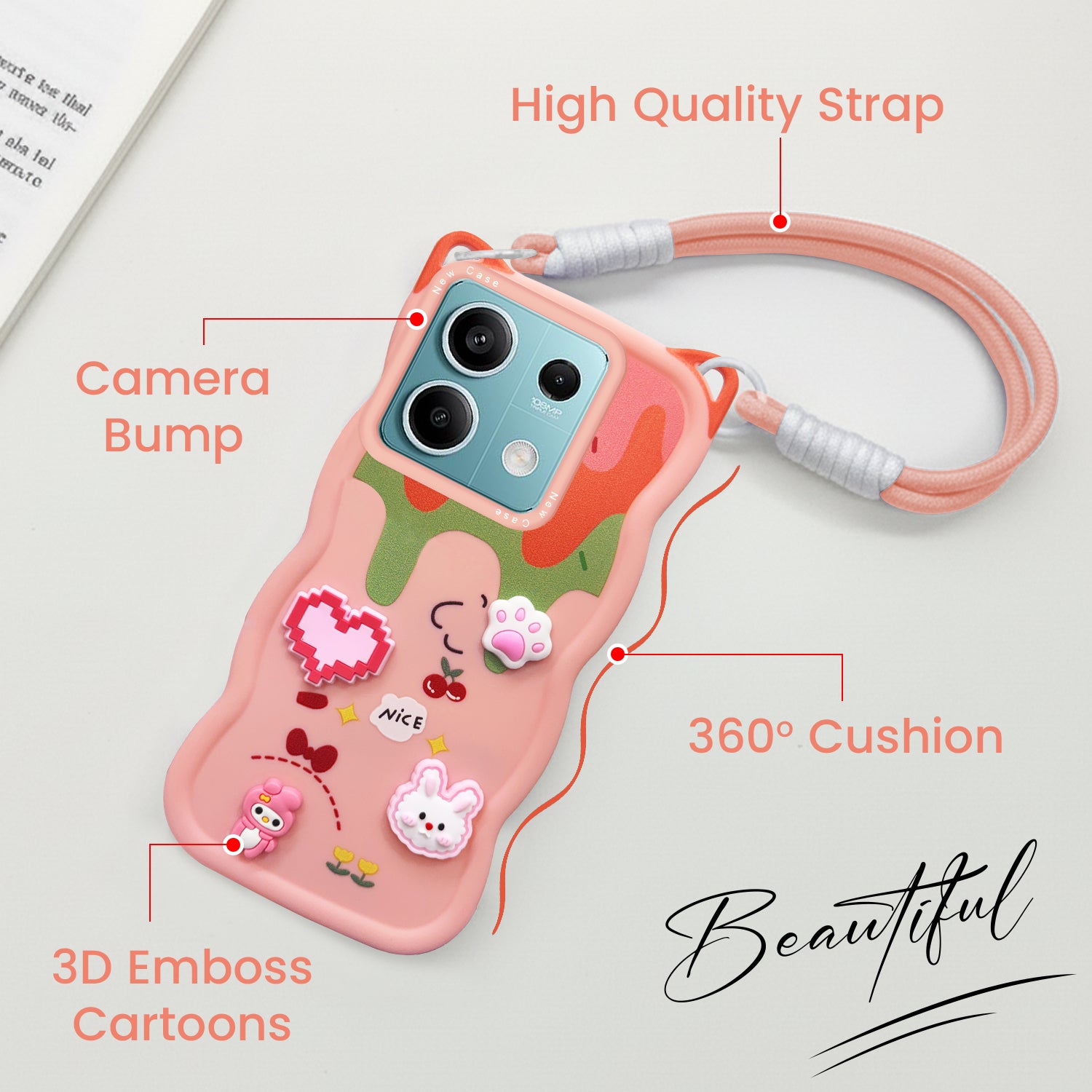 For Xiaomi Redmi Note 13 5G Back Case Cover Strap (3D embossed Figures | Strap Holder | 360* Soft Cushion with Camera Bump)