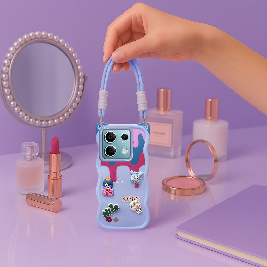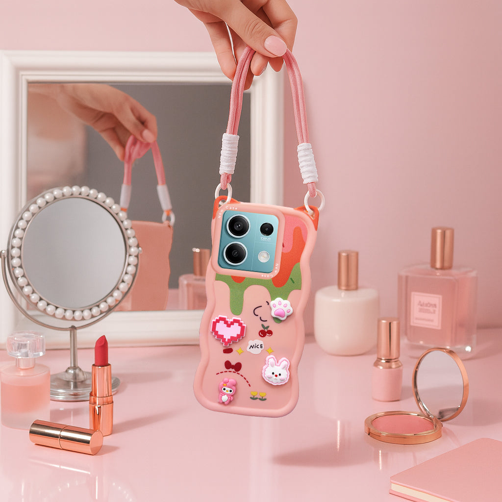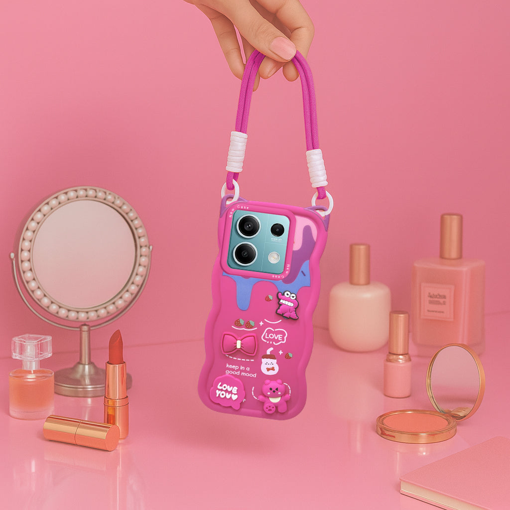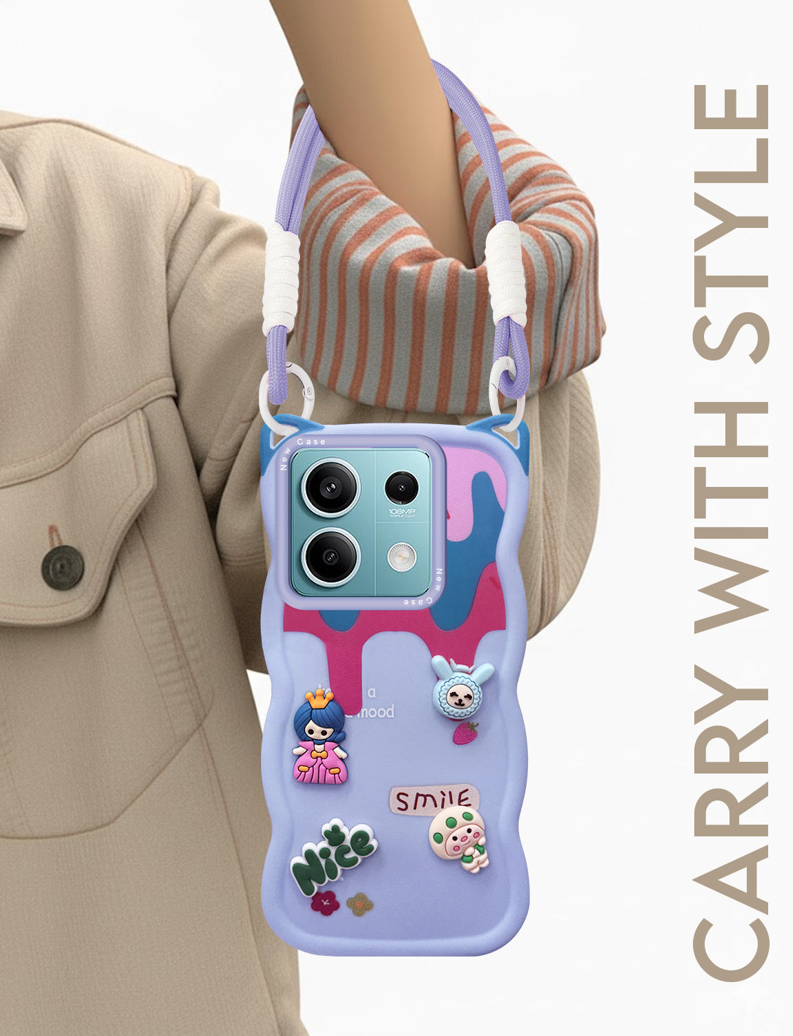 For Xiaomi Redmi Note 13 5G Back Case Cover Strap (3D embossed Figures | Strap Holder | 360* Soft Cushion with Camera Bump)