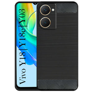 For Vivo Y18 | Y18e | Y03 | Y18i | Y18t Back Case Cover (Carbon Fiber Shockproof | Flexible)