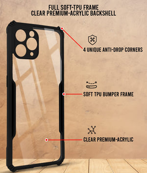 For Apple iPhone 11 Pro Max Back Cover Case (Crystal Glass Back | Camera Protection | Shockproof Bumpers)