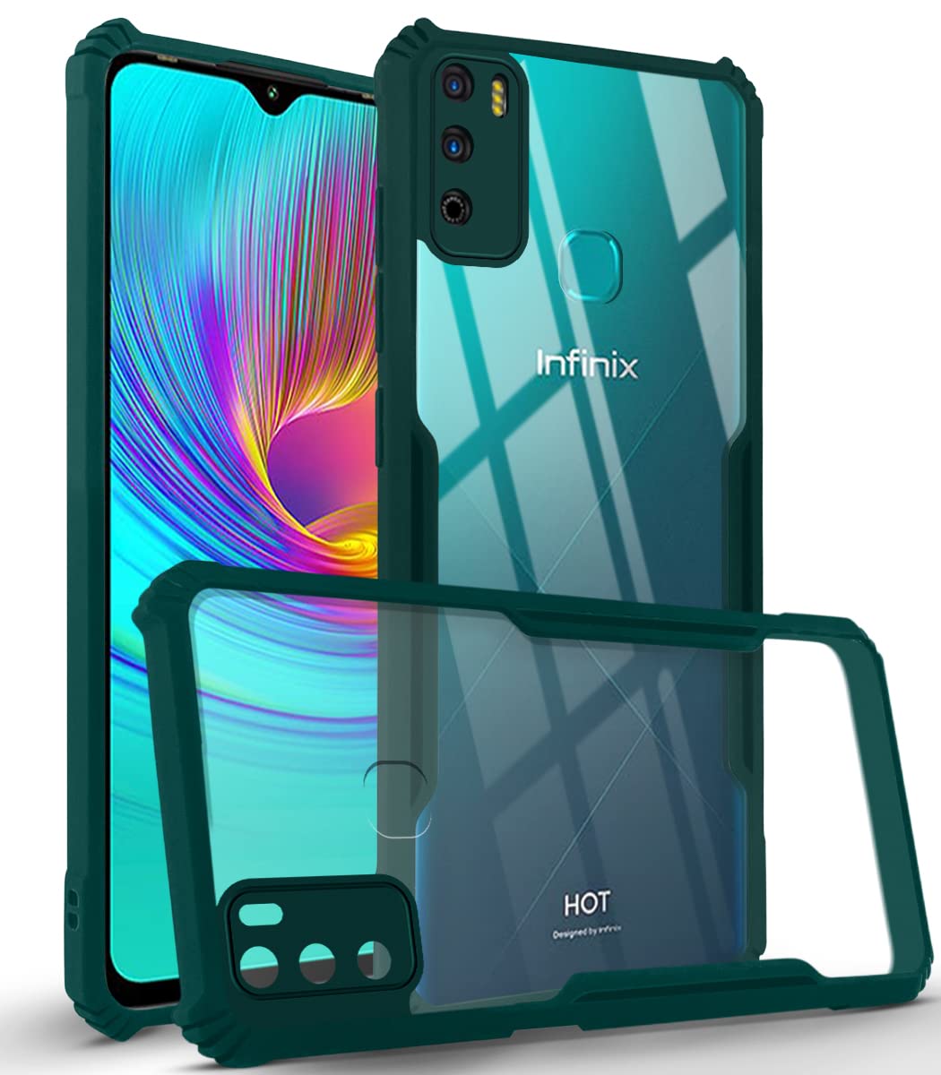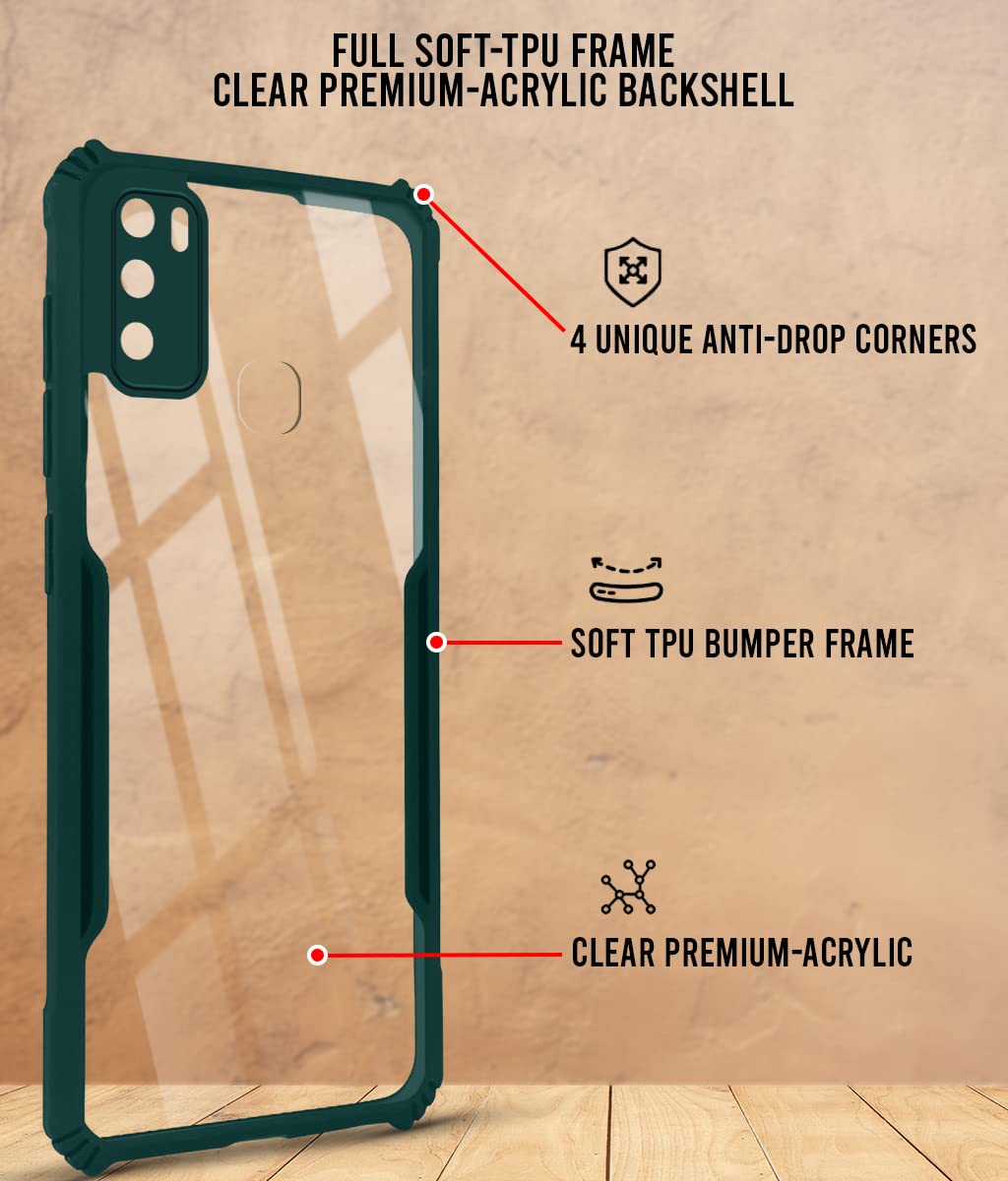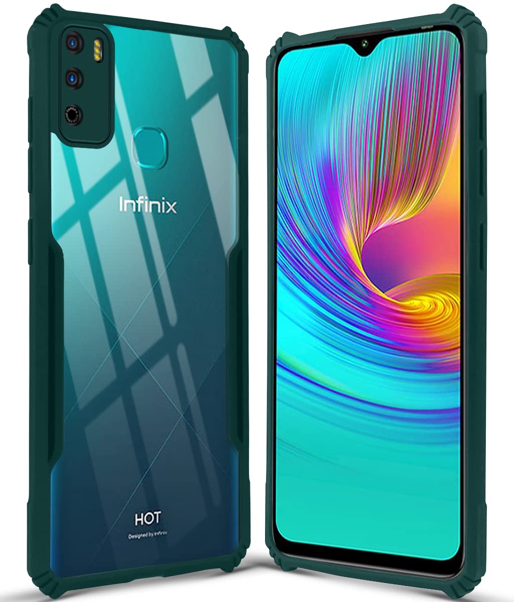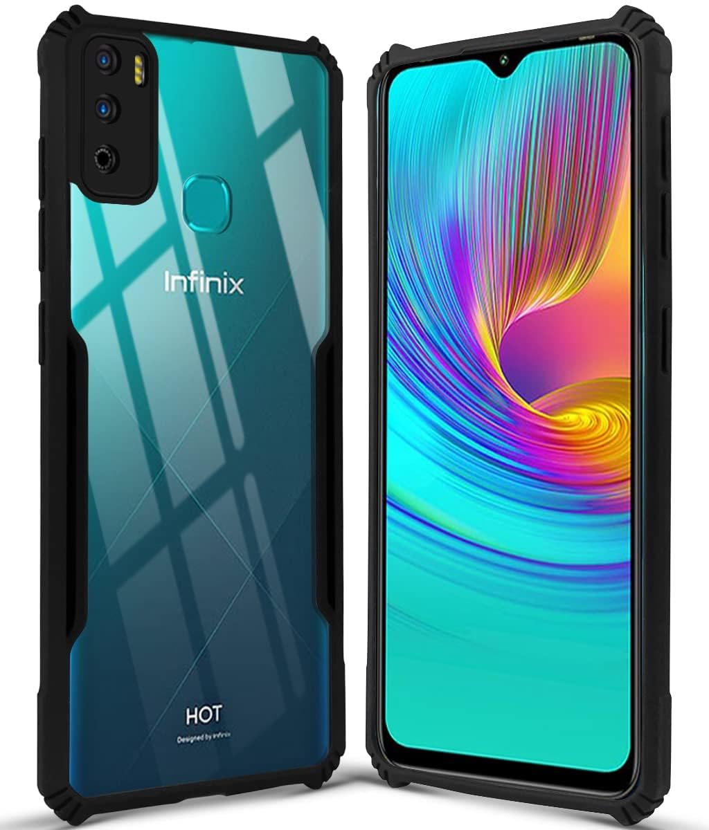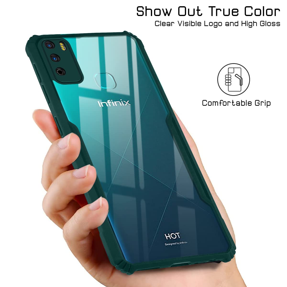 For Infinix Hot 9 Play Back Cover Case (Crystal Glass Back | Camera Protection | Shockproof Bumpers)