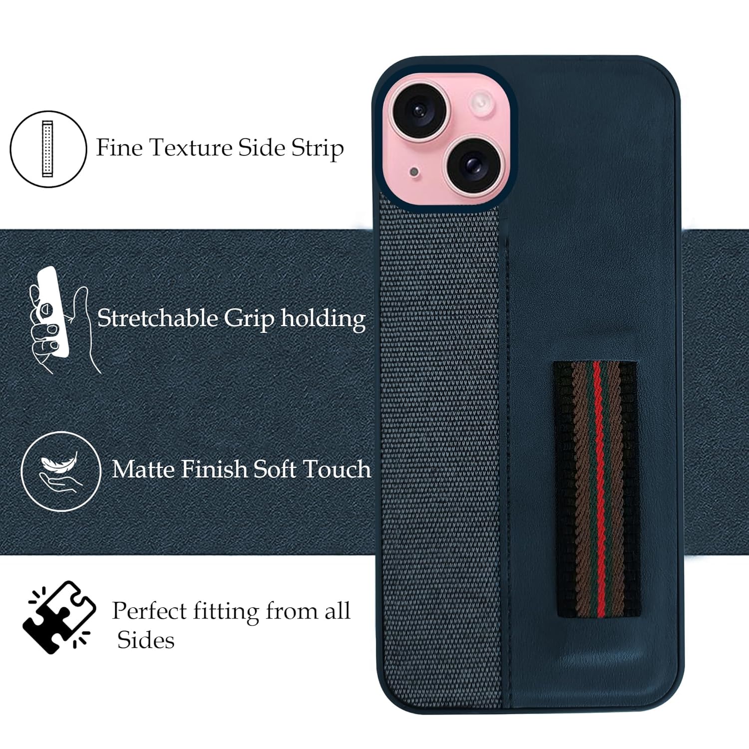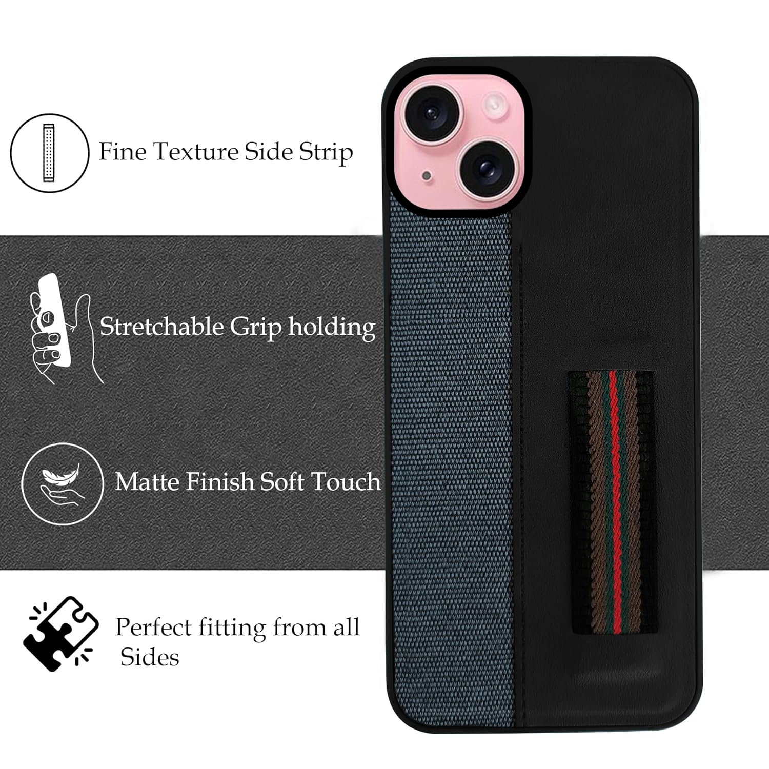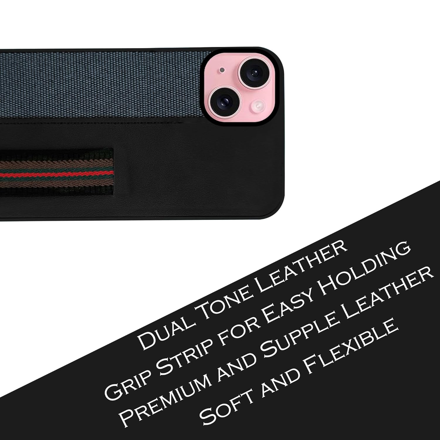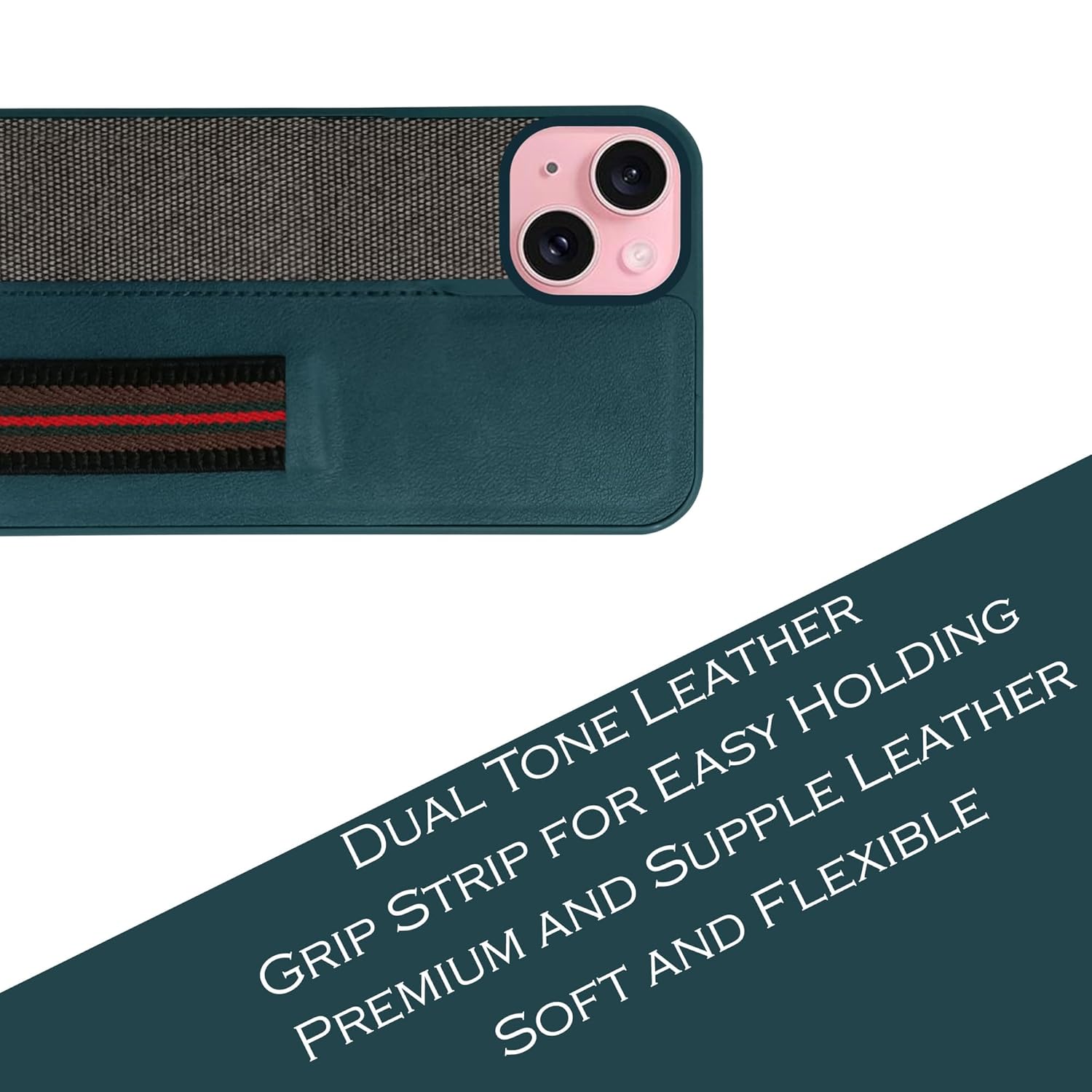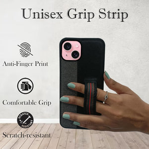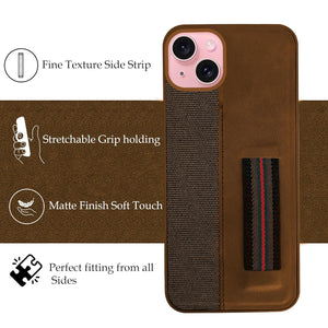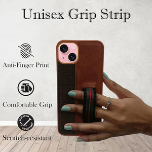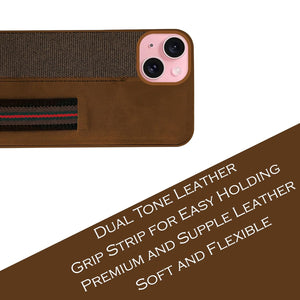 For iPhone 15 Back Cover Case (Professional PU Leather | Strip Chain Holder Socket)