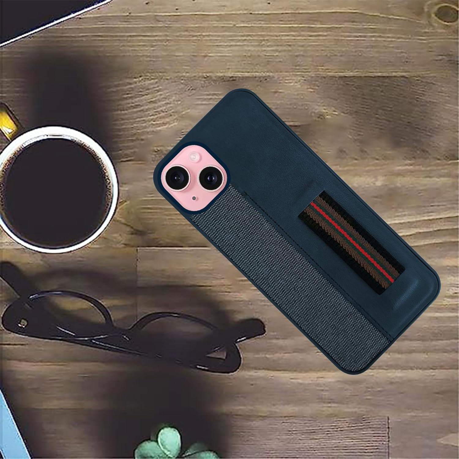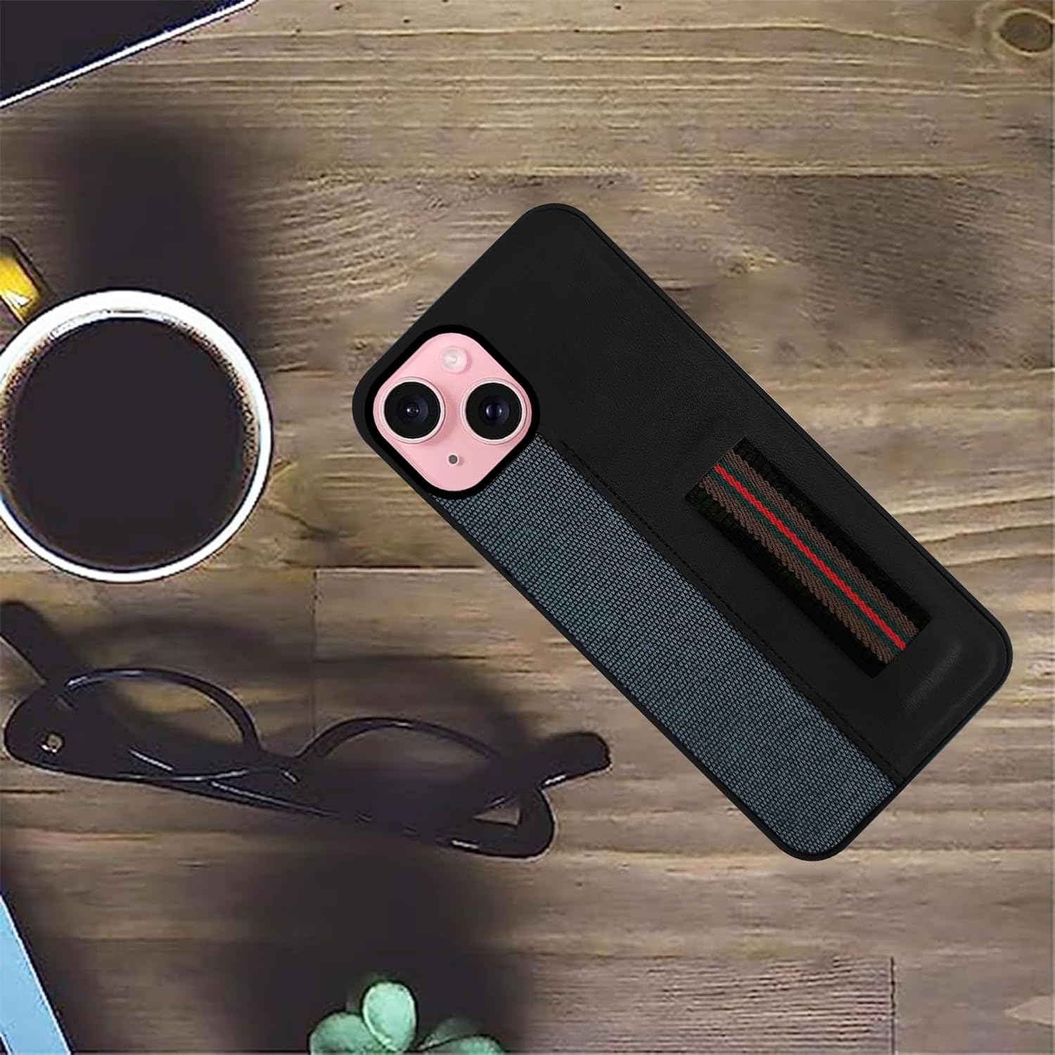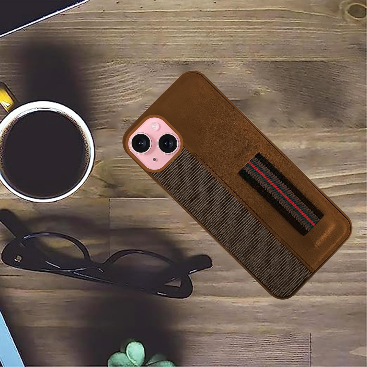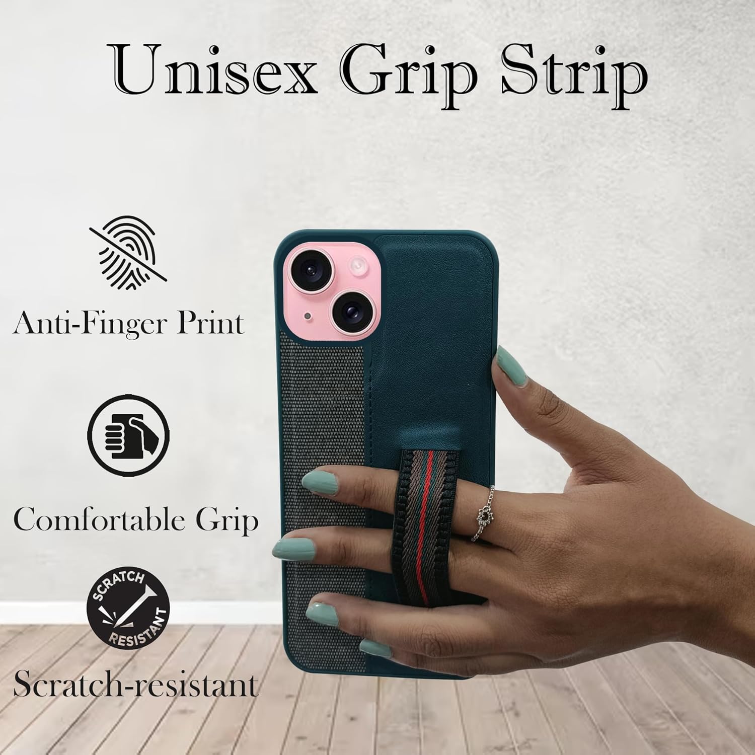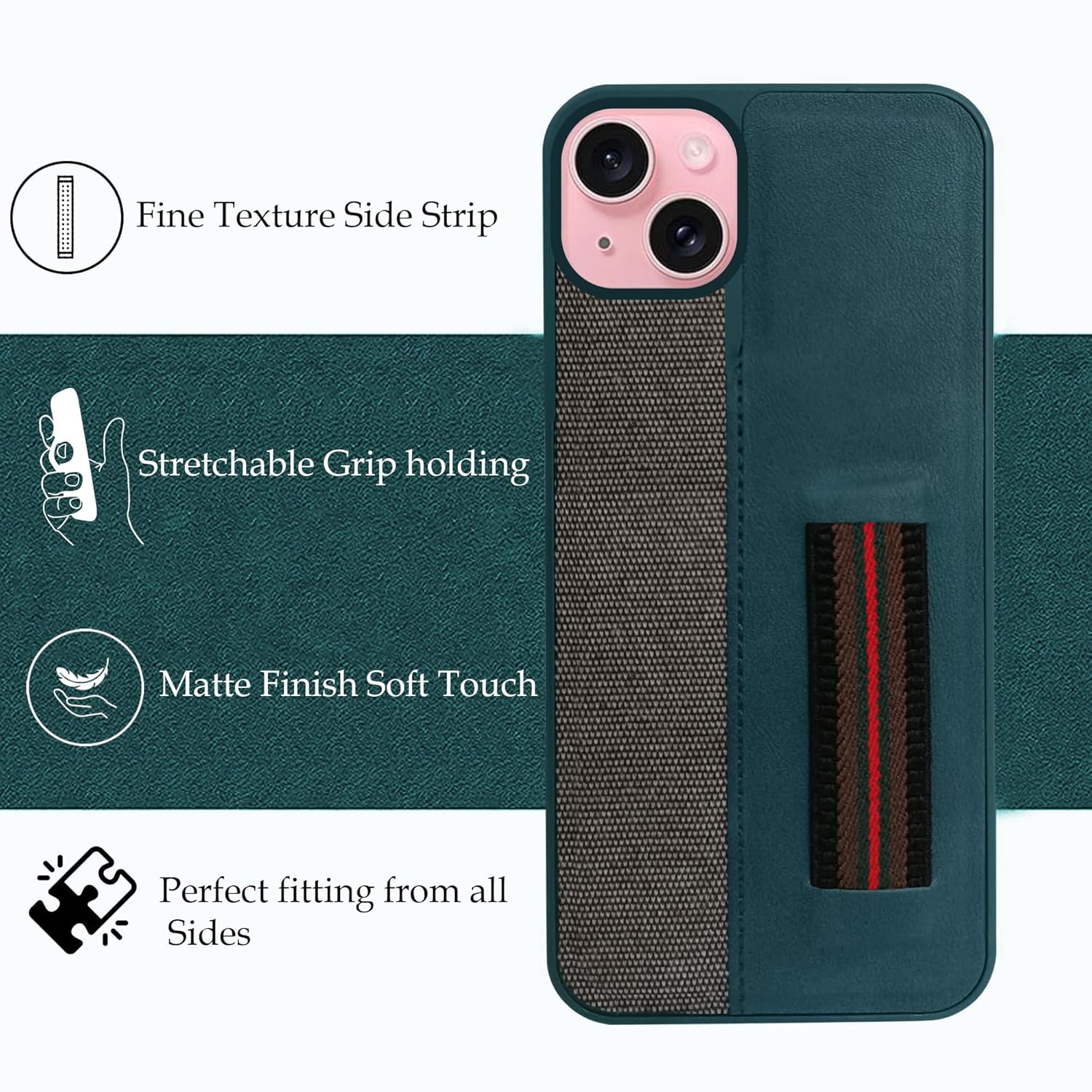 For iPhone 15 Back Cover Case (Professional PU Leather | Strip Chain Holder Socket)