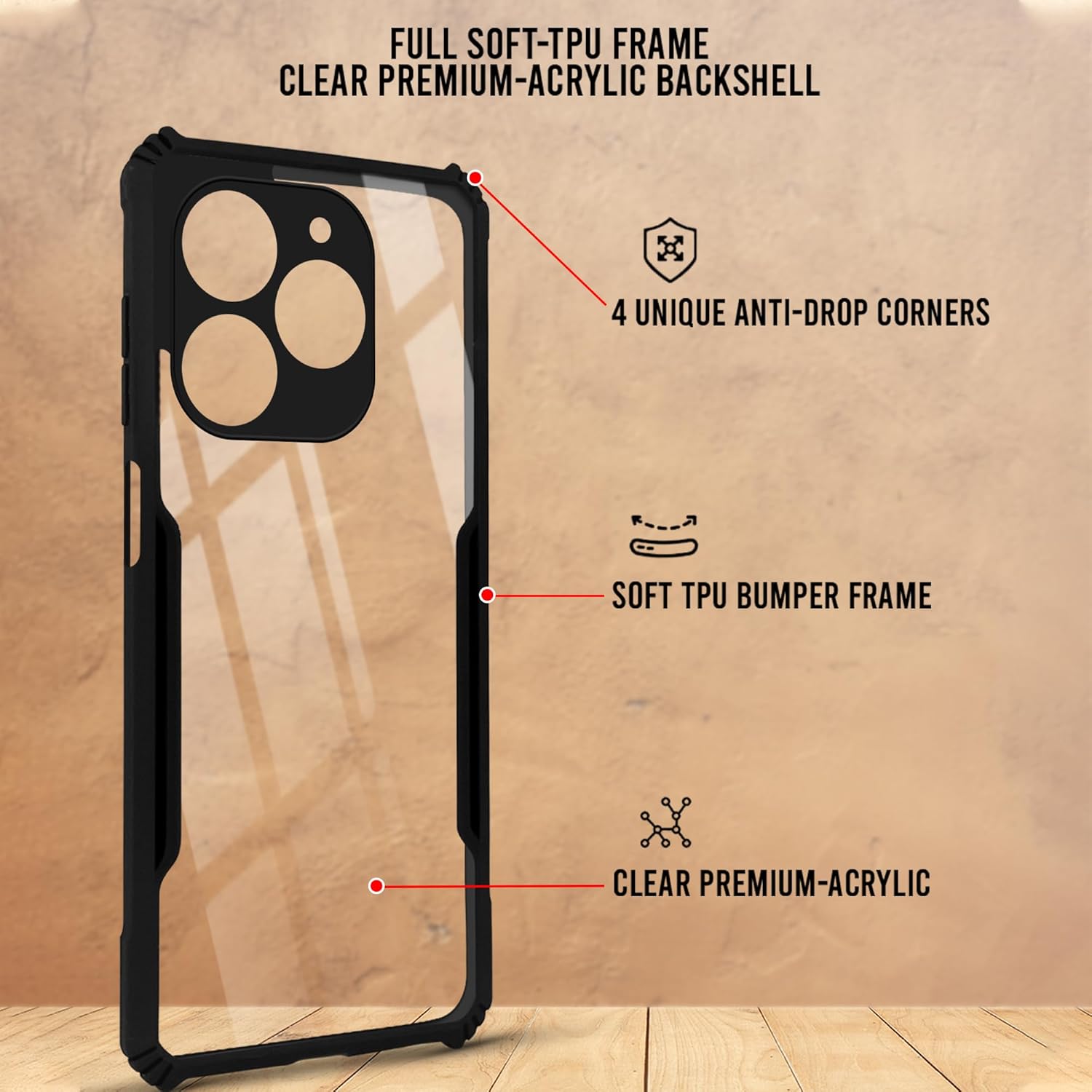 For Itel A70 Back Cover Case (Shockproof with Polycarbonate Clear Panel)
