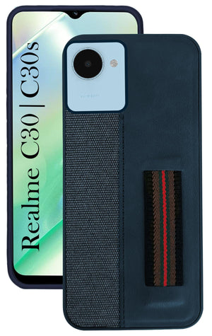 For Realme C30 | C30S Back Cover Case (Professional PU Leather | Strip Chain Holder Socket)