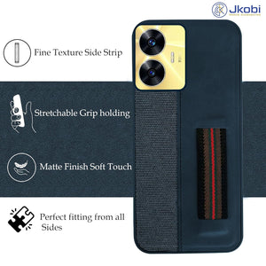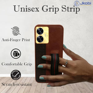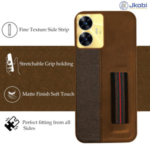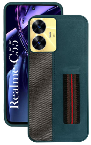 For Realme C55 Back Cover Case (Professional PU Leather | Strip Chain Holder Socket)