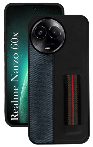 For Realme Narzo 60x Back Cover Case (Professional PU Leather | Strip Chain Holder Socket)