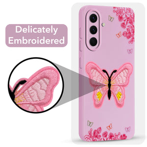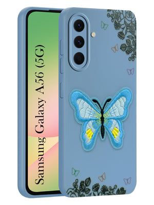 For Samsung Galaxy A56 Back Cover Case (Soft Butterfly Embroidery | Women Teen Girls | Camera Protection| Matte Silicone)