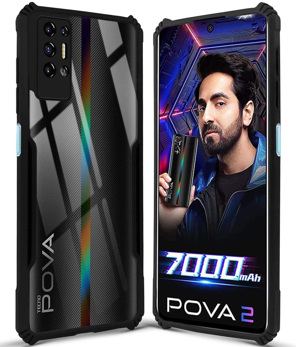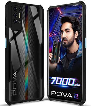 For Tecno Pova 2 Back Cover Case (Shockproof with Polycarbonate Clear Panel)