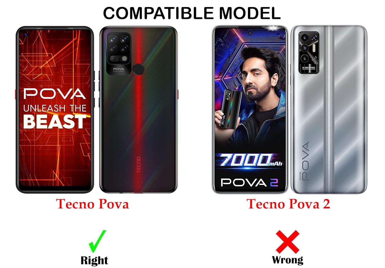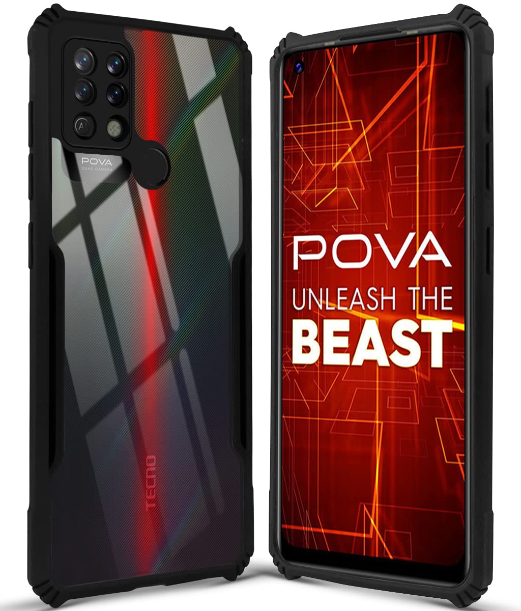 For Tecno Pova Back Cover Case (Crystal Glass Back | Camera Protection | Shockproof Bumpers)