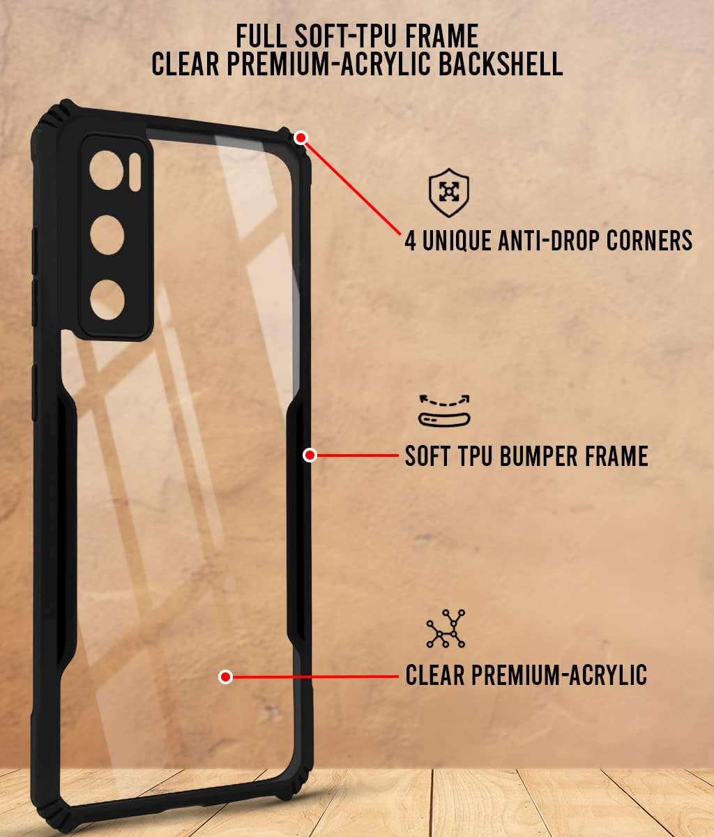 For Vivo V20 SE Back Cover Case (Shockproof with Polycarbonate Clear Panel)