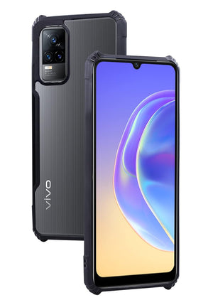 For Vivo V21e 4G Back Cover Case (Crystal Glass Back | Camera Protection | Shockproof Bumpers)