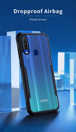 For Vivo Y12 | Y15 | Y17 Back Cover Case (Crystal Glass Back | Camera Protection | Shockproof Bumpers)