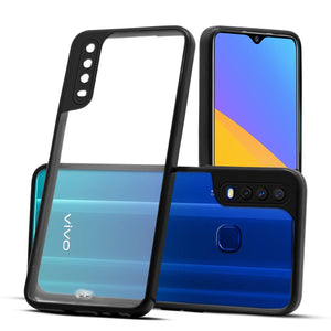 For Vivo Y12 | Y15 | Y17 Back Cover Case (PC - Crystal Clear | Flexible Glass Back | Camera Protection | Airbag Shockproof Grip)